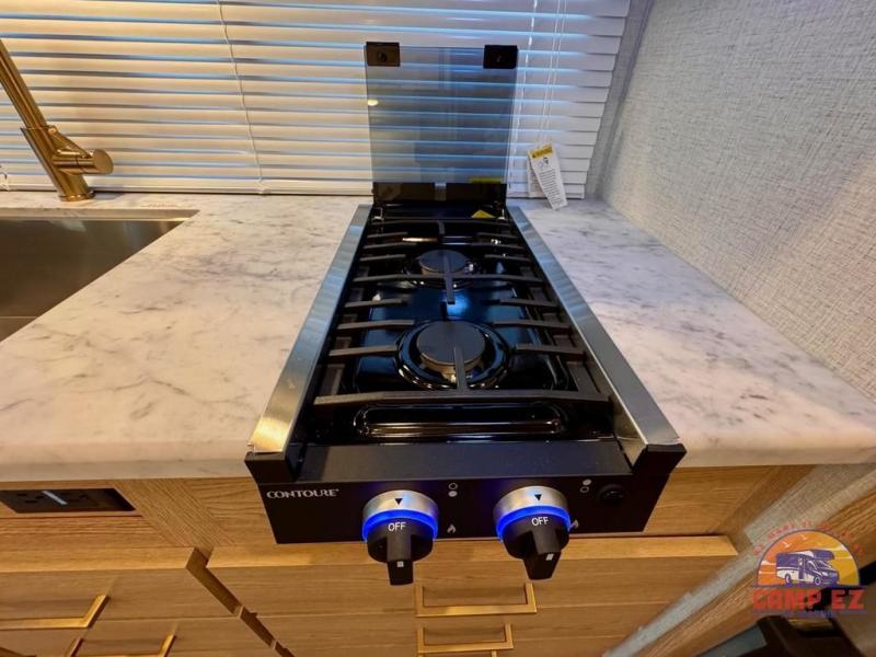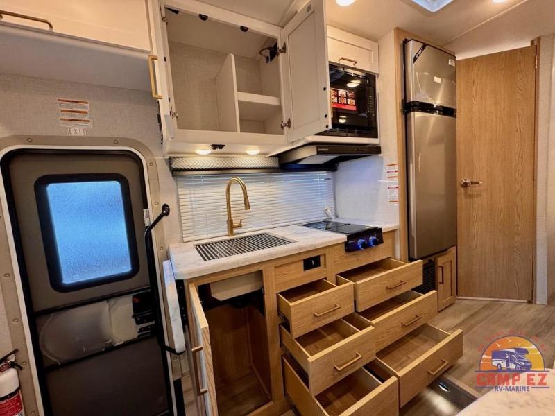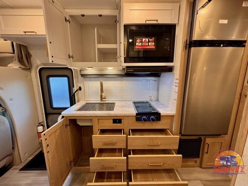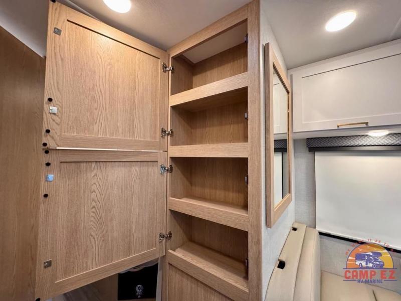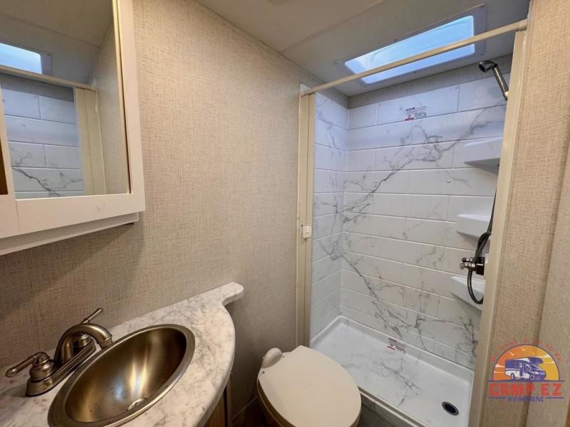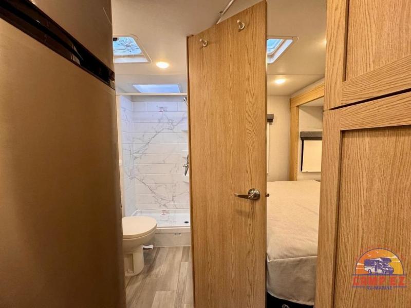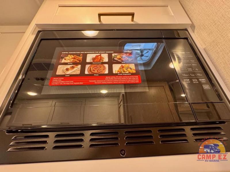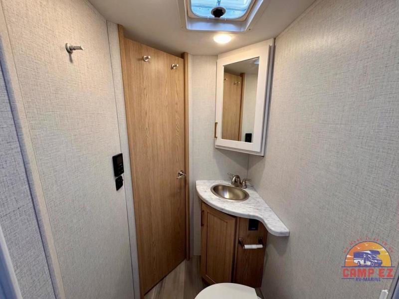 It won't be hard to find comfort in this coach for five! You can freshen up in the rear corner full bath once you've set up camp, then make lunch on the two burner gas cooktop or convection microwave with an air fryer. There is also a 12V refrigerator for cold items and a flip-up countertop for more space. Whether you dine at the Dream Dinette or take your plate outdoors under the 15' power awning, you're sure to have a great time in this motorhome. There is a semi-private bedroom with a 60" x 74" RV queen bed slide and bedroom TV prep if you want the option to watch movies in bed. And your guests can take the Dream Dinette and cab-over bunk at night!