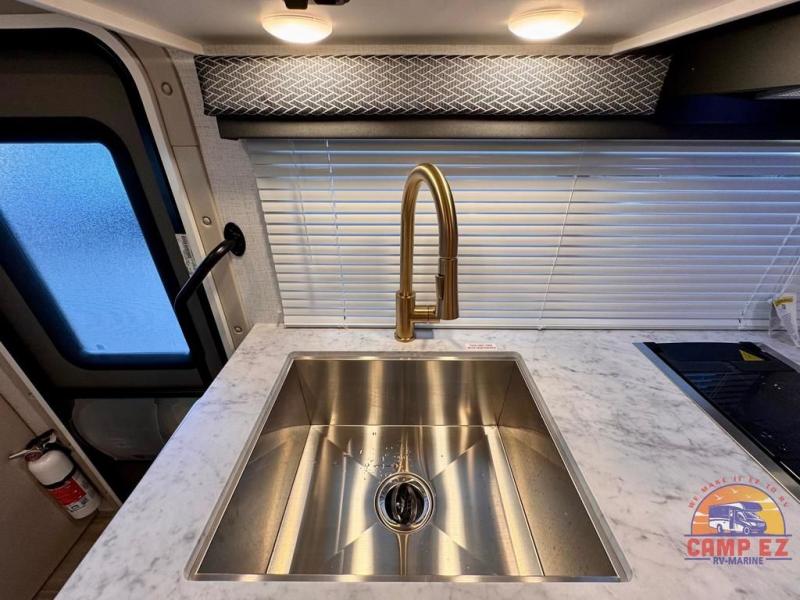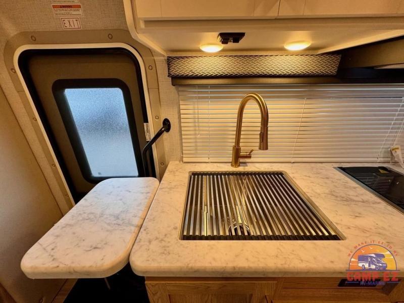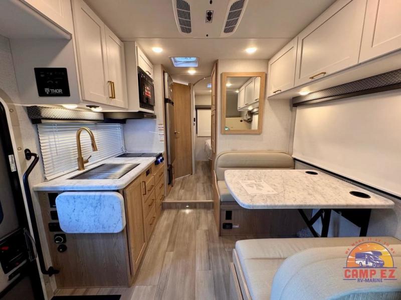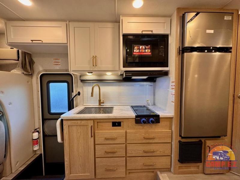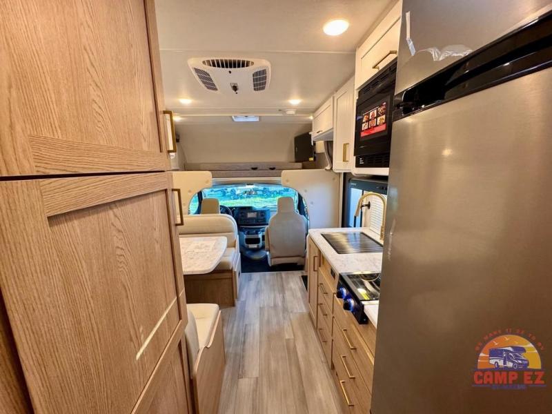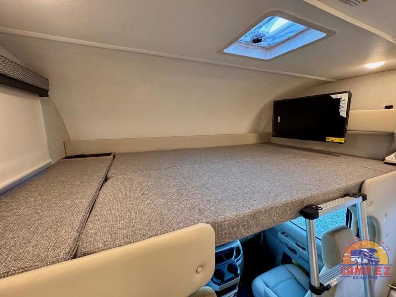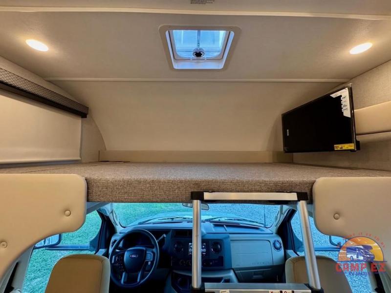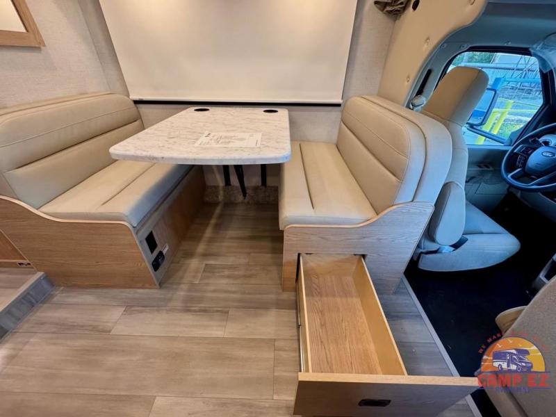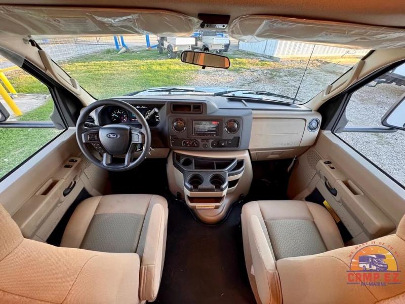 With any Four Winds ESpec Class C gas motorhome by Thor Motor Coach, you will find convenient amenities, a modern interior, and a reliable Ford E-Series chassis, with an optional Chevy chassis on select models to power your adventures. There is welded tubular aluminum roof and sidewall cage construction, a one-piece fiberglass front cap, and a one-piece domed roof membrane for added strength. Residential vinyl flooring will be easy to keep clean, and you'll love the sleek look of the Hampton Collection, two-toned cabinets. These motorhomes also include a 50 state 4.0 kW dual gas/LP generator and a 30-amp shoreline power cord to keep you going, along with a tankless water heater and 13,500 roof front A/C to ensure your comfort!