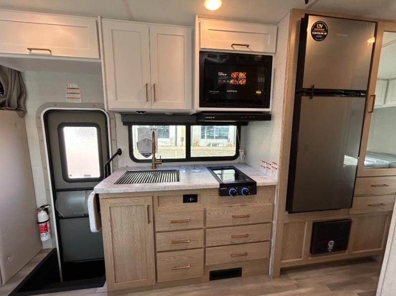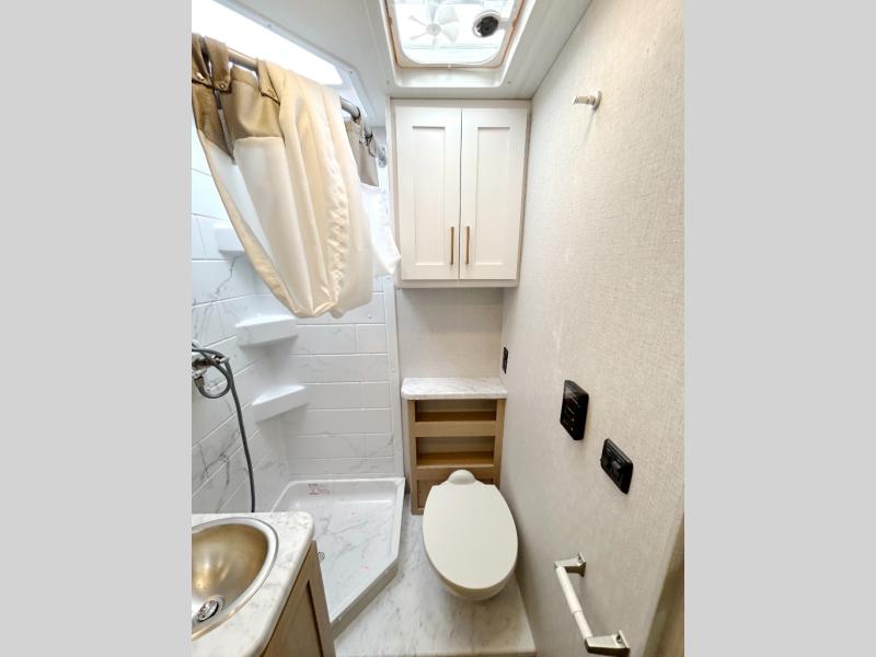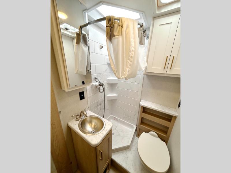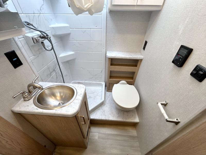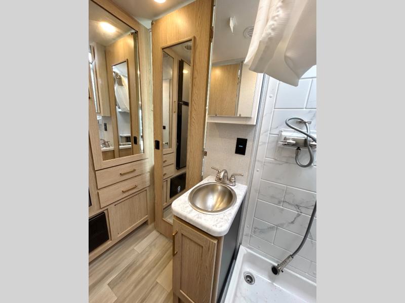 It won't be hard to find comfort in this coach for five! You can freshen up in the mid-coach full bath once you've set up camp, then make lunch on the two burner gas cooktop or convection microwave with an air fryer. There is also a 12V refrigerator for cold items and a flip-up countertop for more space. Whether you dine at the Dream Dinette slide out or take your plate outdoors under the 17' 6" power awning, you're sure to have a great time in this motorhome. The semi-private rear bedroom includes a privacy curtain, two twin beds with a king-size bed conversion, plus TV prep if you want the option to watch shows in bed. And any guests you may have can sleep on the dinette and 52" x 96" cab-over sleeping space!