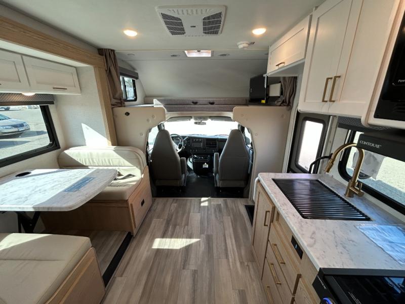 With any Four Winds ESpec Class C gas motorhome by Thor Motor Coach, you will find convenient amenities, a modern interior, and a reliable chassis. There is welded tubular aluminum roof and sidewall cage construction, a one-piece fiberglass front cap, and a one-piece domed roof membrane for added strength. Residential vinyl flooring will be easy to keep clean, and you'll love the sleek look of the Hampton Collection, two-toned cabinets. These motorhomes also include a 50 state 4.0 kW dual gas/LP generator and a 30-amp shoreline power cord to keep you going, along with a tankless water heater and 13,500 roof front A/C to ensure your comfort!