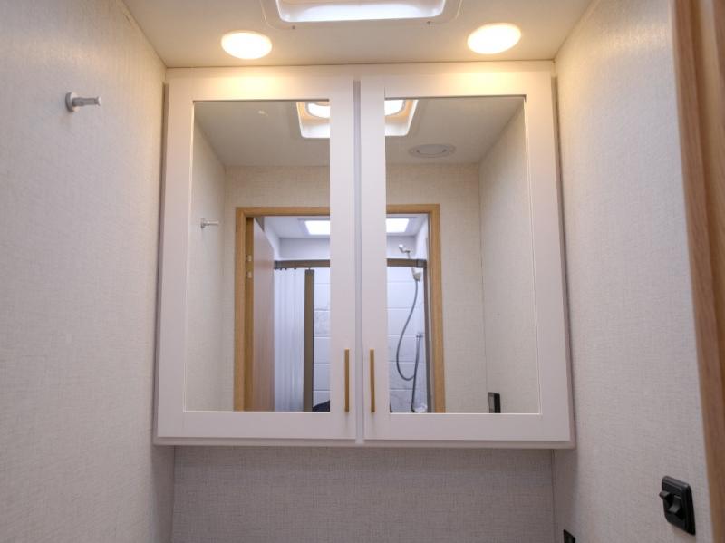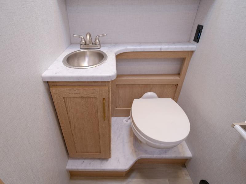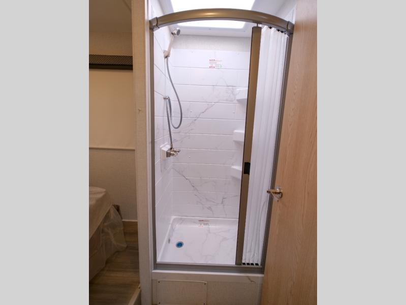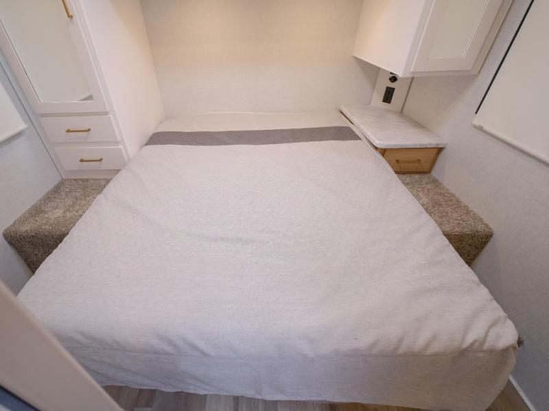 Whether you are couple or a family, this coach offers so many comforts you might never go back home! There is a rear bedroom offering a walk-around queen bed with storage on each side, and a split bathroom allowing two people to get ready at once. You'll love the living room furniture that can double as sleeping space for overnight guests, along with the cab-over bunk. There are full kitchen amenities such as a gas cooktop and microwave, plus the 12V refrigerator is next to the mid-coach entry allowing you to grab a beverage on your way out to relax under the power awning with integrated LED lighting. There is more to enjoy like the 32" Smart TV with swivel for the perfect view of the game, the dream dinette for dining and working, the sofa to relax on, and the cab over bunk to take a nap.