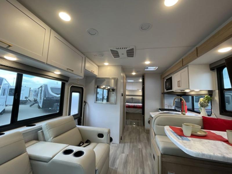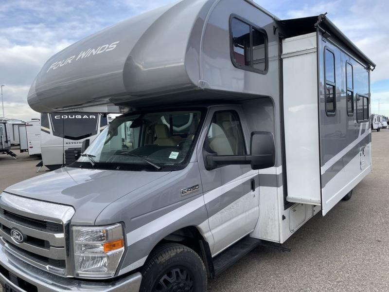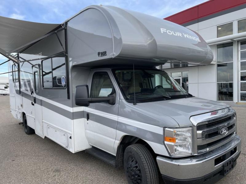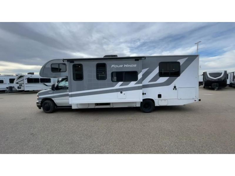 With any Four Winds Class C gas motorhome, you can travel in a trustworthy Ford E-Series chassis with 325HP. Each is built with welded sidewall cage construction and a welded tubular aluminum roof, a one-piece fiberglass cap, and includes a slick fiberglass exterior with graphics package for style and years of enjoyment on the open road. Inside, you will enjoy the well-equipped kitchen, the spacious bathroom, the sleeping accommodations and the Winegard ConnecT 2.0 WiFi/4G/TV antenna that allows you to stay connected. With several floorplans to choose from and options to add, you will surely find one that fits your family's needs or your friend's approval. Choose today!