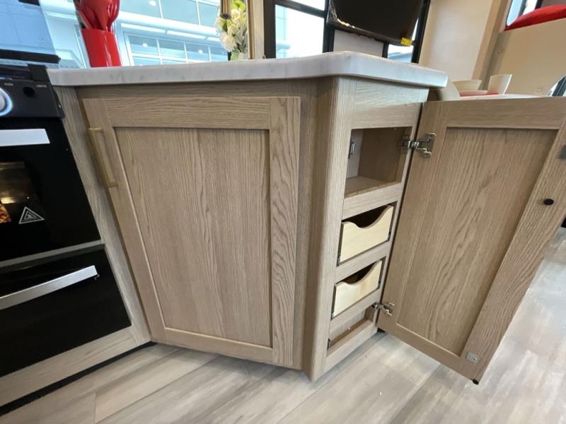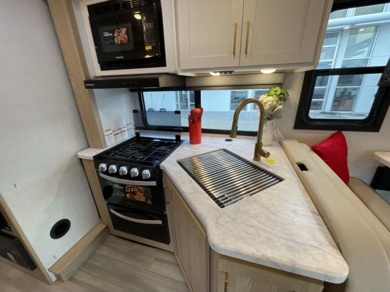 Perfect for a couple or a growing family, this coach will allow you to enjoy inside comforts and outdoor scenery where ever you drive and park! You will have great views out of the many windows when you are indoors, and the power awning offers an outdoor living area protected by the elements when you want some fresh air. The cook will love the large single bowl stainless steel sink with a single handle faucet with a pull-down sprayer when cleaning fruits and veggies, the gas cooktop and microwave when making meals, as well as the 12V refrigerator to hold all the cold items. The slide out creates even more floor space, the furniture offers a place to dine and visit as well as sleep, and the private bedroom with a full bathroom just steps away will complete the deal! You will also appreciate the optional exterior kitchen and optional exterior TV for more choices!