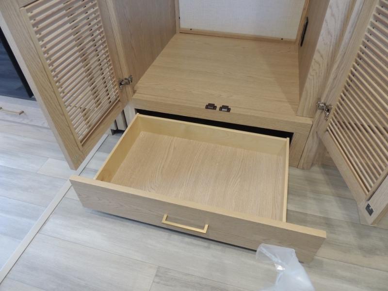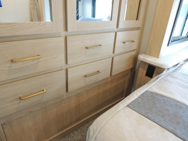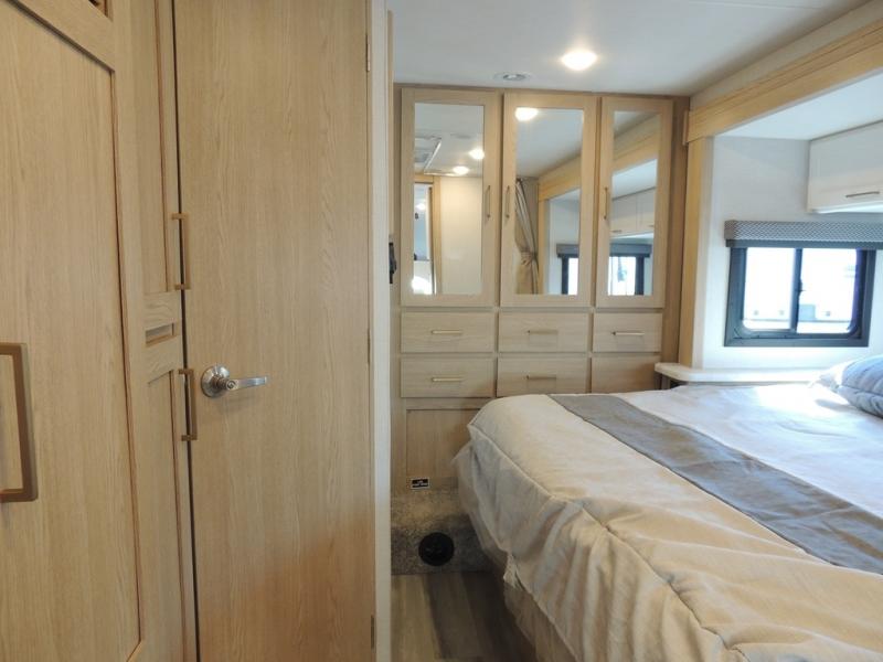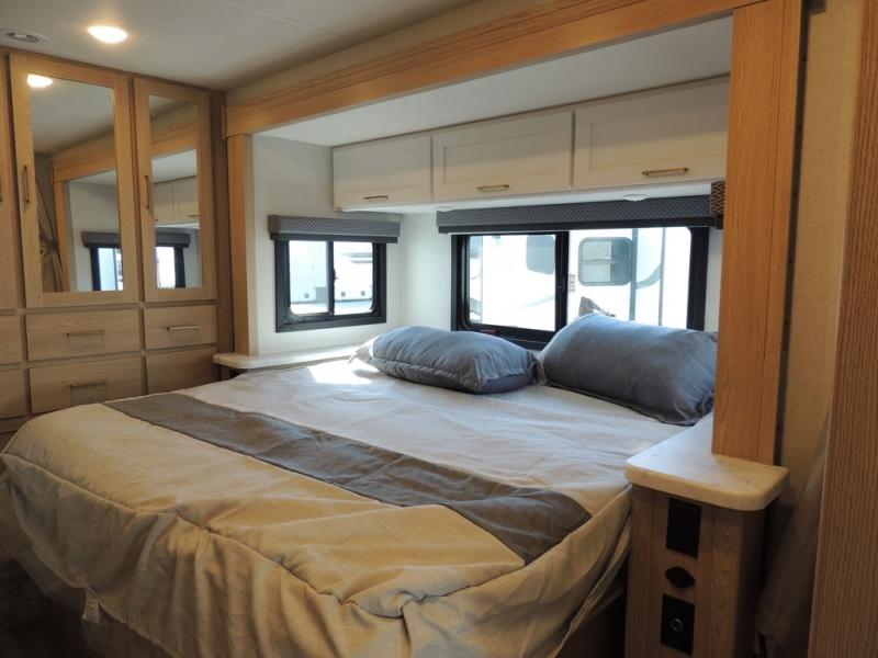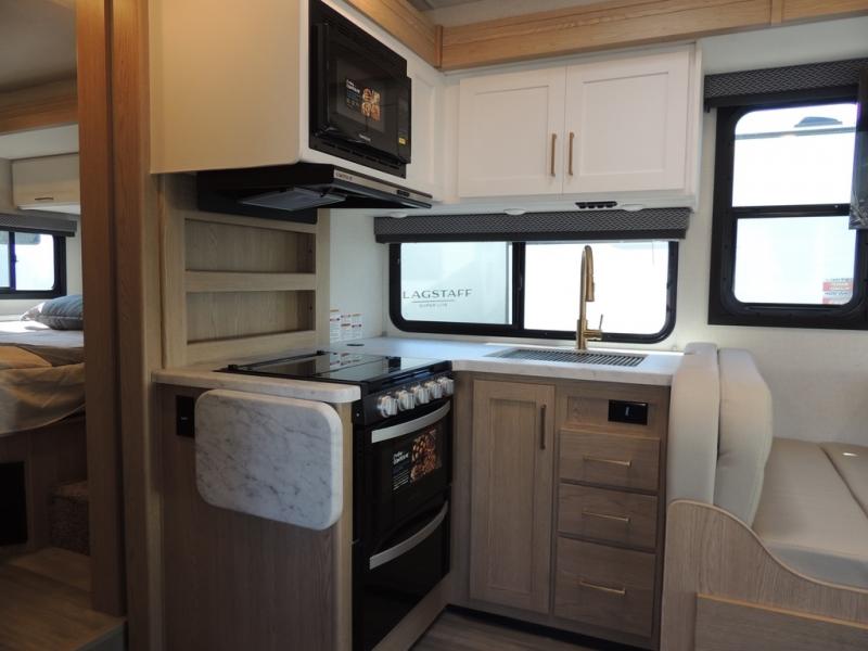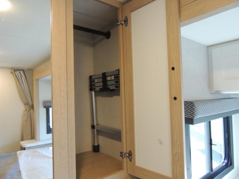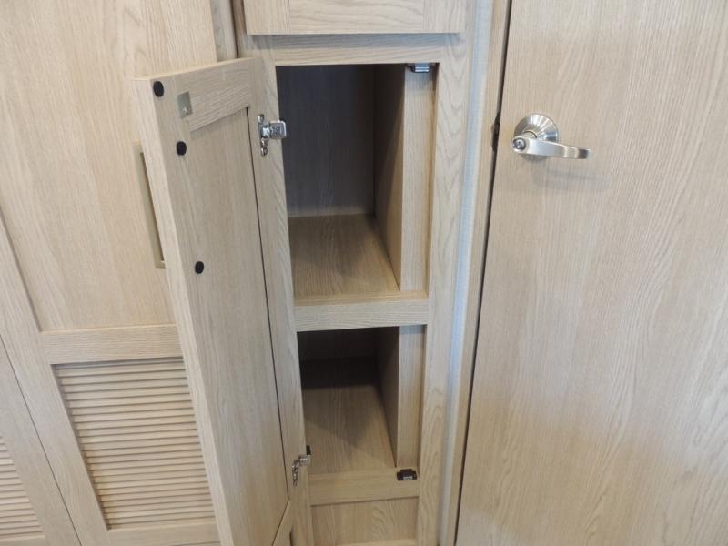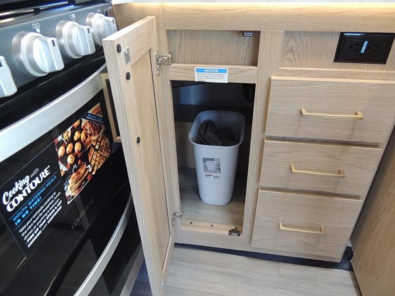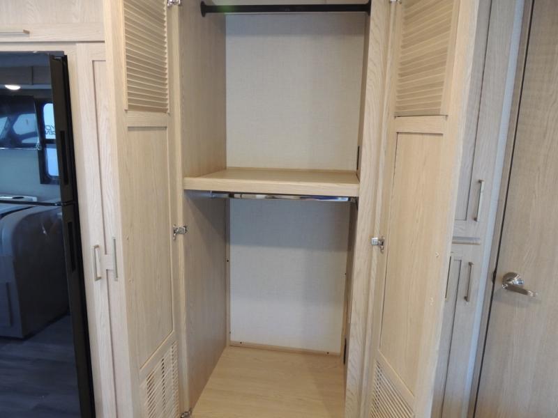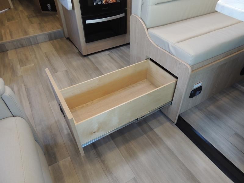 Easily head out for fun at a state park, the lake or your friend's ranch. This coach is easy to maneuver on the road or in town thanks to its compact size, yet has so many conveniences, you might not return home. The front cab over bunk is a perfect sleeping space for guests, the 40" Smart TV allows you to watch shows when you want some inside time, and the 71" Dream Dinette gives you a place to dine and relax. The cook will love all the kitchen amenities at their fingertips, plus the flip-up countertop extension is super handy. The rear corner bedroom offers a king bed slide for more floor space, a privacy curtain and a closet, plus the full bathroom is a few steps away.