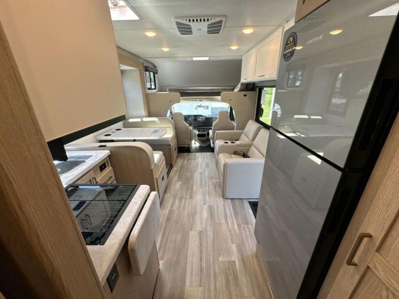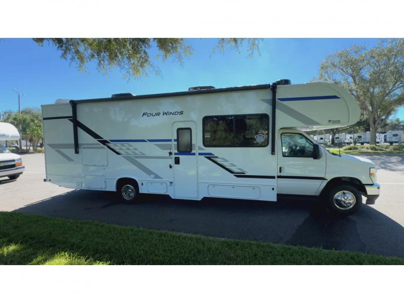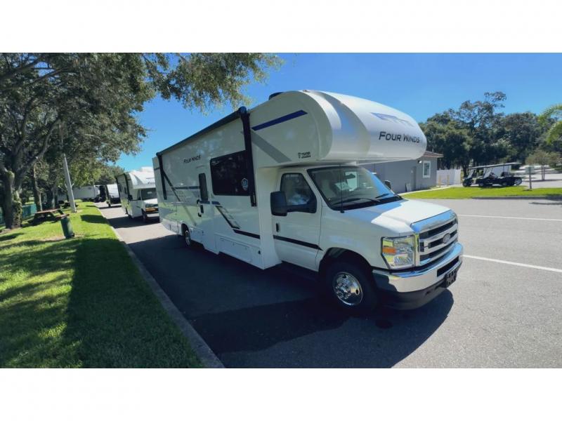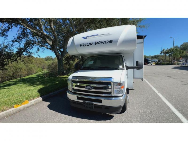 With any Four Winds Class C gas motorhome, you can travel in a trustworthy Ford E-Series chassis with 325HP, or a Chevrolet chassis with 401HP if you choose that option which is available on several models. Each is built with welded sidewall cage construction and a welded tubular aluminum roof, a one-piece fiberglass cap, and includes a slick fiberglass exterior with graphics package for style and years of enjoyment on the open road. Inside, you will enjoy the well-equipped kitchen, the spacious bathroom, the sleeping accommodations and the Winegard ConnecT 2.0 WiFi/4G/TV antenna that allows you to stay connected. With several floorplans to choose from and options to add, you will surely find one that fits your family's needs or your friend's approval. Choose today!