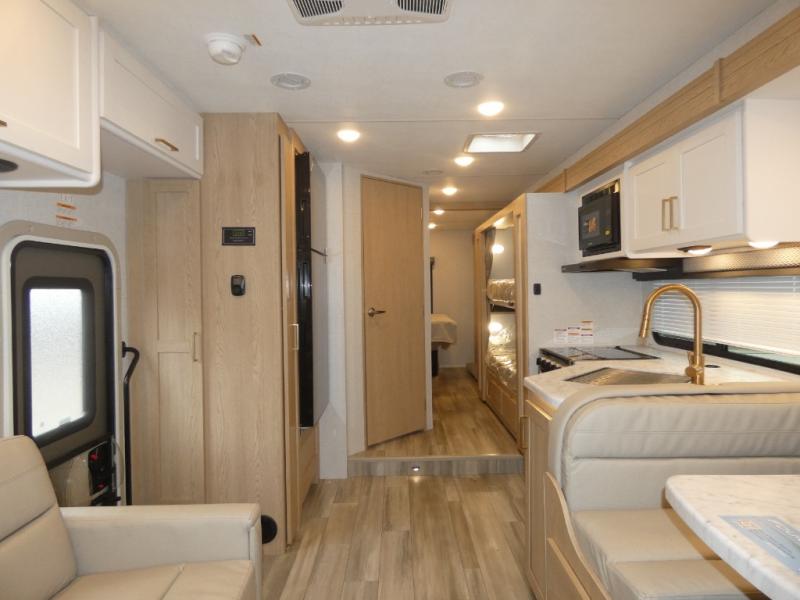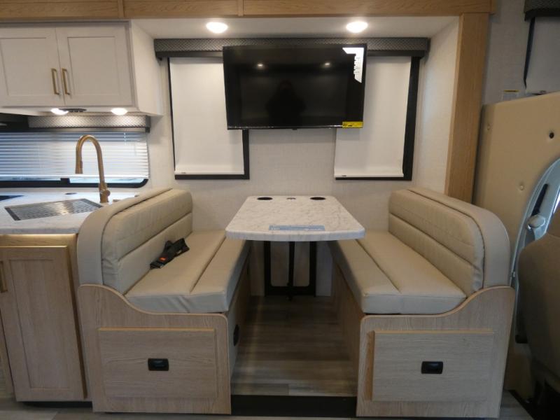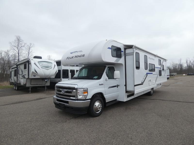 With any Four Winds Class C gas motorhome, you can travel in a trustworthy Ford E-Series chassis with 325HP. Each is built with welded sidewall cage construction and a welded tubular aluminum roof, a one-piece fiberglass cap, and includes a slick fiberglass exterior with graphics package for style and years of enjoyment on the open road. Inside, you will enjoy the well-equipped kitchen, the spacious bathroom, the sleeping accommodations and the Winegard ConnecT 2.0 WiFi/4G/TV antenna that allows you to stay connected. Choose today!