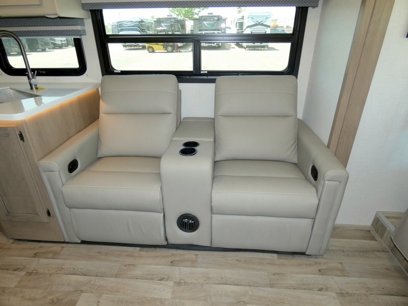 Family trips across the country are made complete in this spacious coach! The swivel captain's chairs can become a part of the living area once you park, and your guests can relax on the Dream Dinette or theater seats. Lunch can be made on the three burner gas cooktop, or in the 30" over-the-range microwave oven, and clean up will be a breeze in the stainless steel single bowel sink. This model also includes an outdoor kitchen with a refrigerator and a sink to easily clean up. You will love having your own bedroom to retreat to each night, and here you'll find a king bed, a 32" LED Smart TV, plus a closet to keep your clothes and shoes tidy!