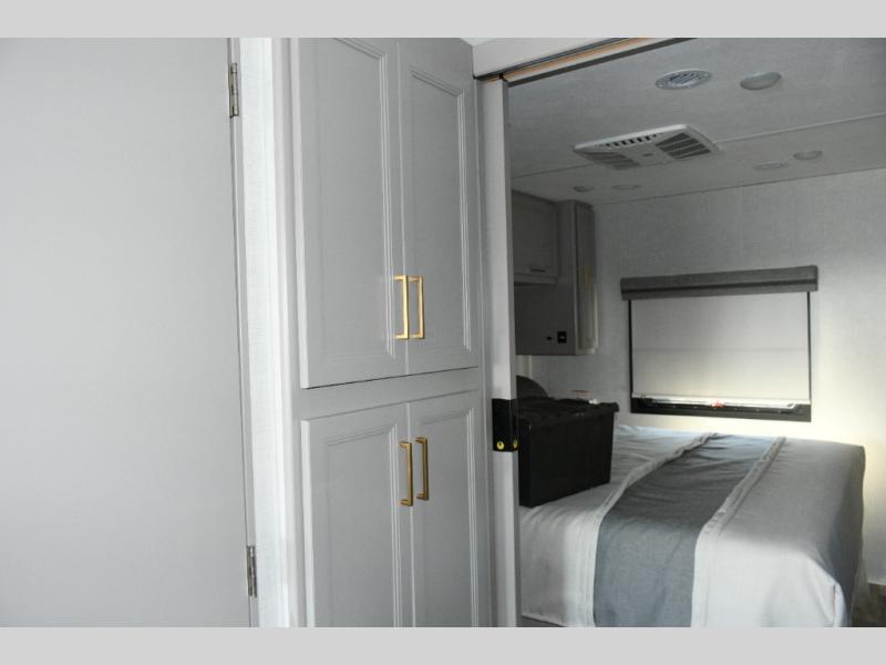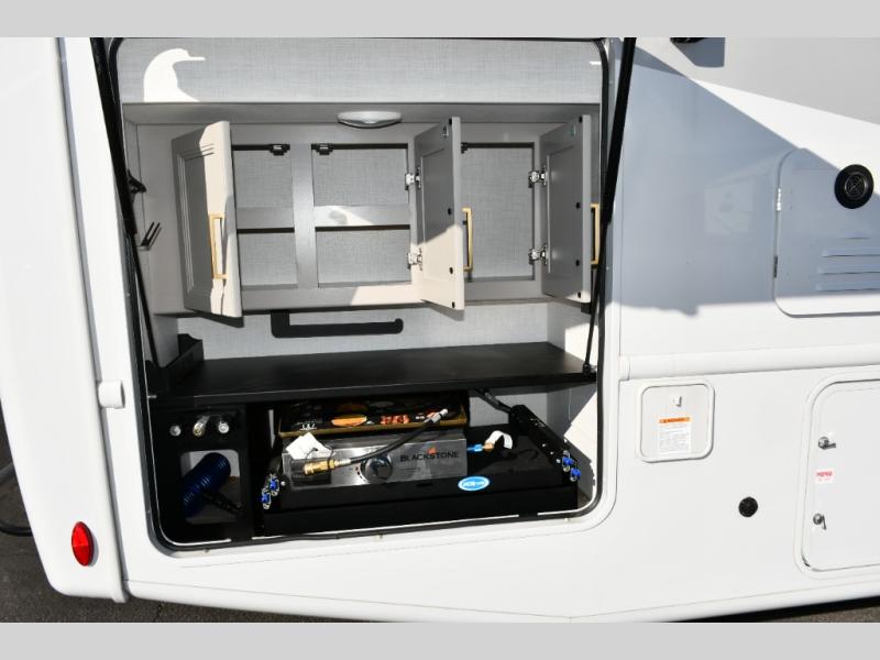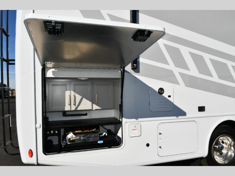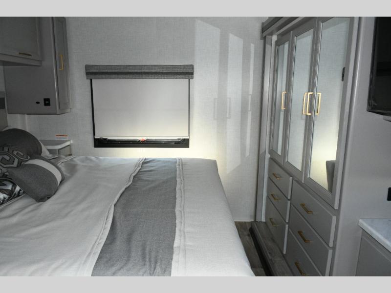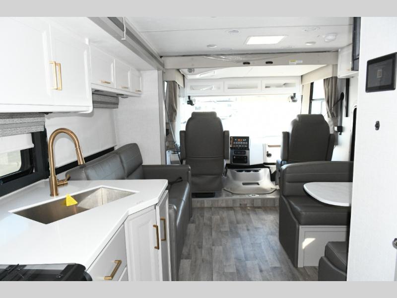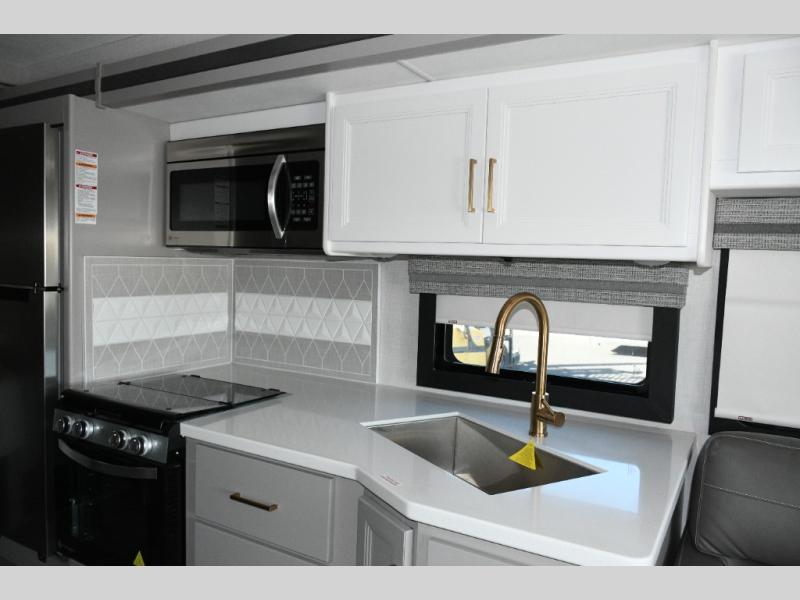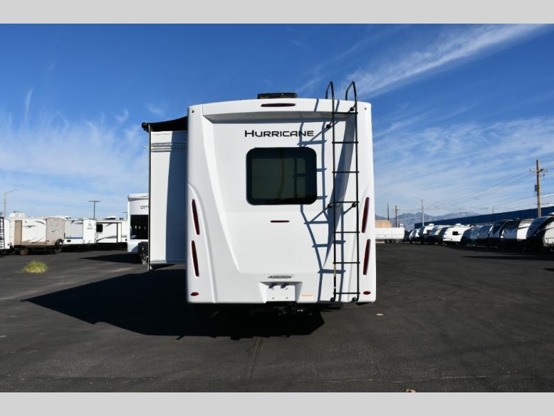 The Hurricane 29L offers the perfect balance of drivability, family-friendly sleeping, and residential-style comfort. Its full-wall slide creates a surprisingly spacious interior, while the overhead bunk and multiple sleeping areas make it ideal for families or guests. The outdoor kitchen expands your living space into the campsite, and the powerful Ford chassis ensures you can explore confidently, whether you’re heading to the Grand Canyon, the California coast, or beyond. This coach is built for real travel, real comfort, and real adventure.