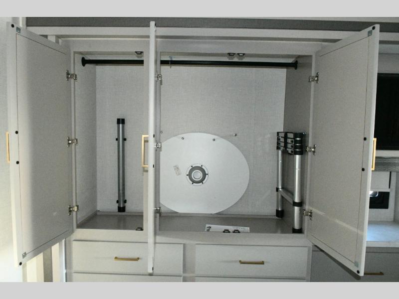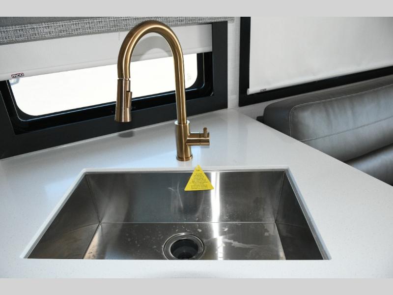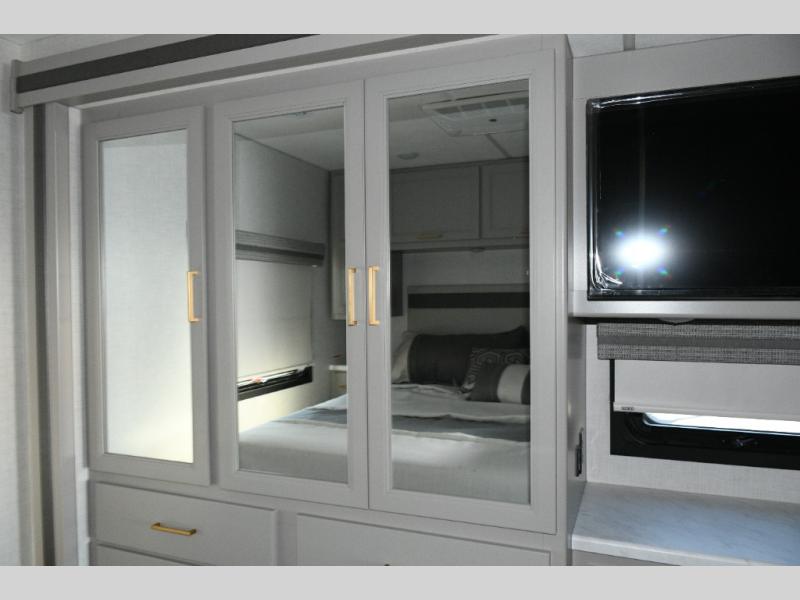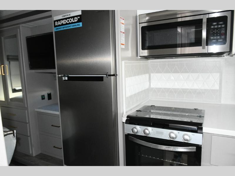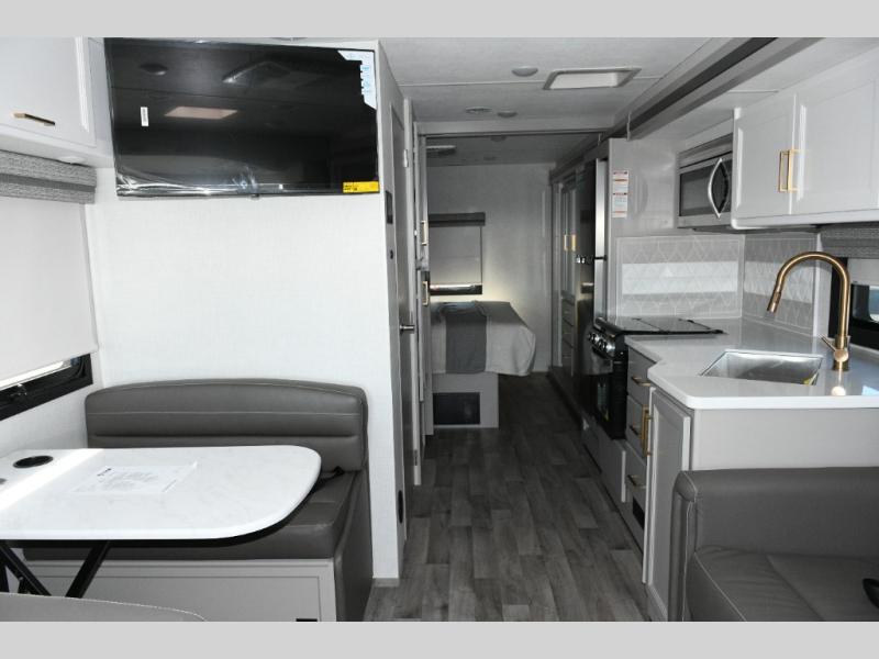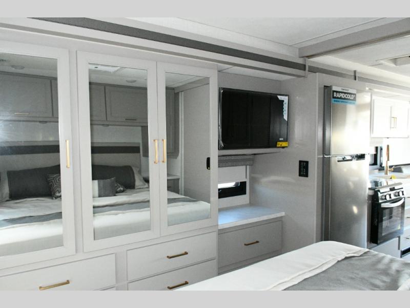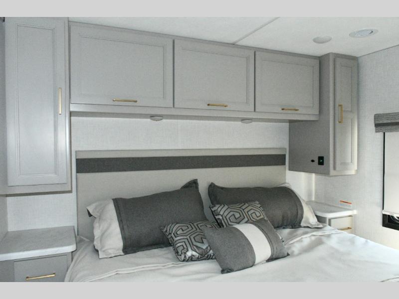 The Hurricane 29L offers the perfect balance of drivability, family-friendly sleeping, and residential-style comfort. Its full-wall slide creates a surprisingly spacious interior, while the overhead bunk and multiple sleeping areas make it ideal for families or guests. The outdoor kitchen expands your living space into the campsite, and the powerful Ford chassis ensures you can explore confidently, whether you’re heading to the Grand Canyon, the California coast, or beyond. This coach is built for real travel, real comfort, and real adventure.