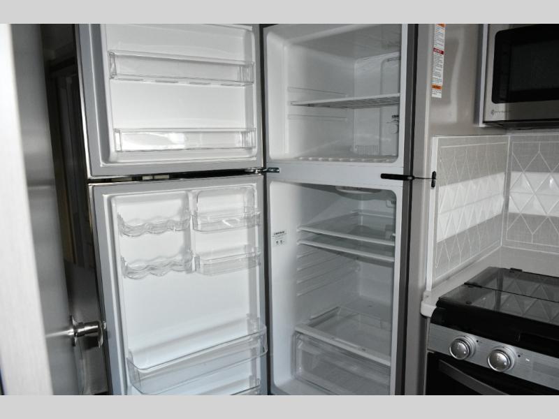 Residential double-door refrigerator for extended trips and family-sized grocery storage.