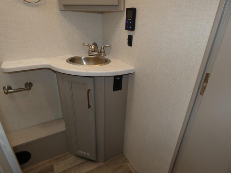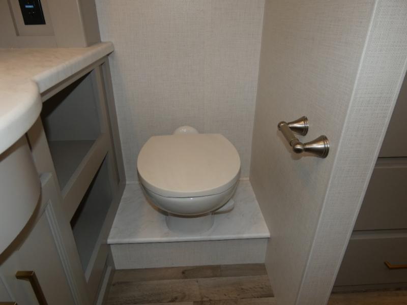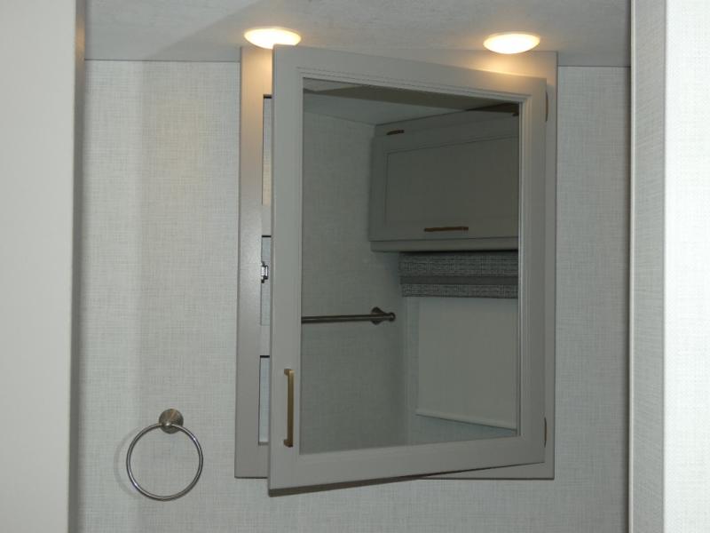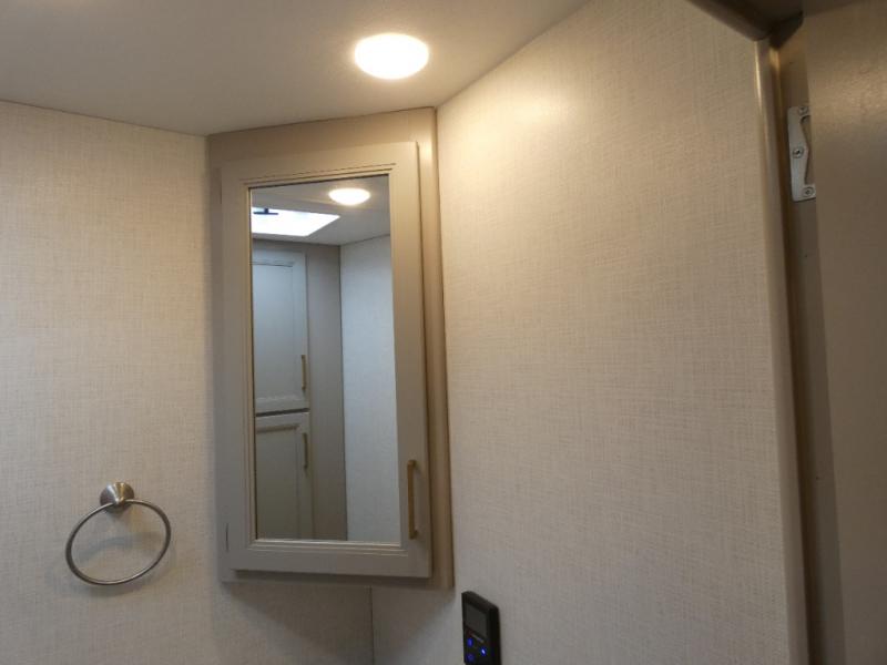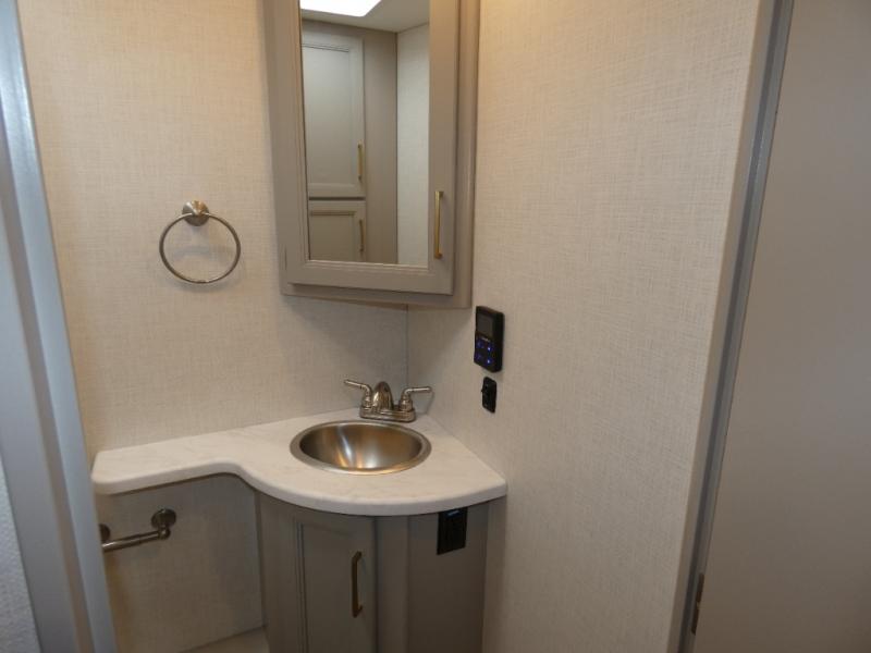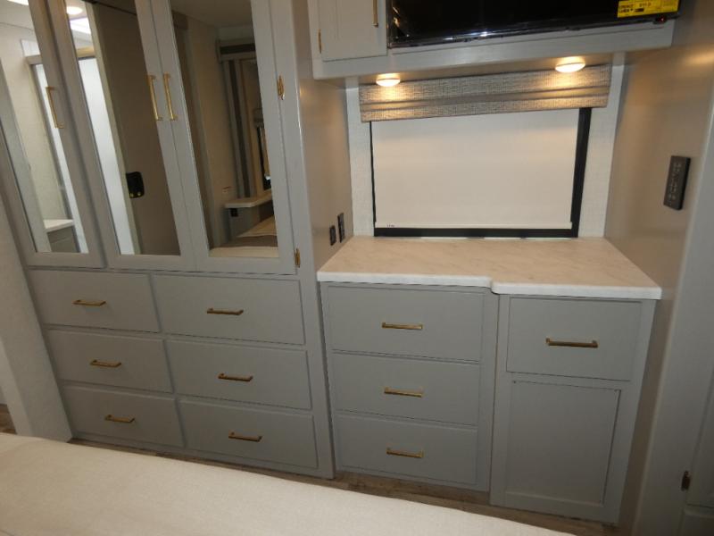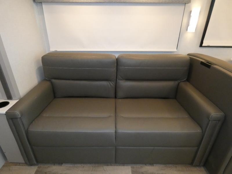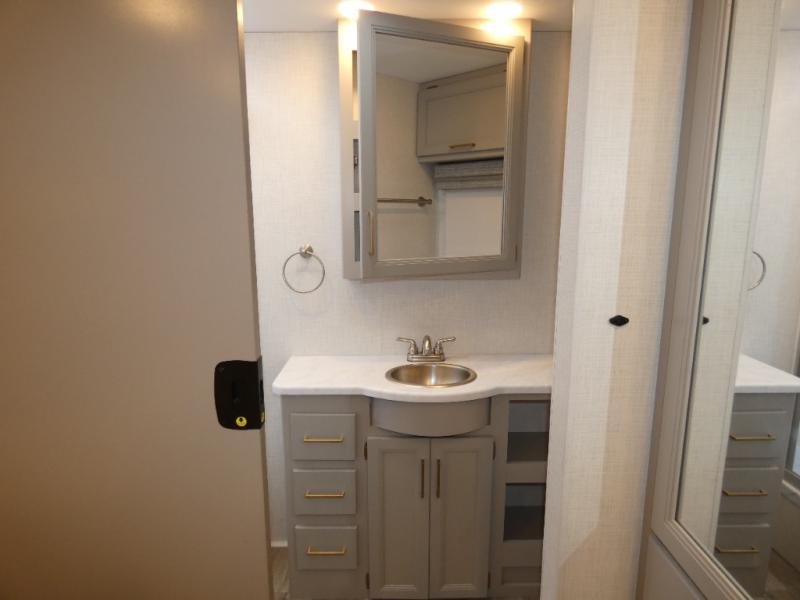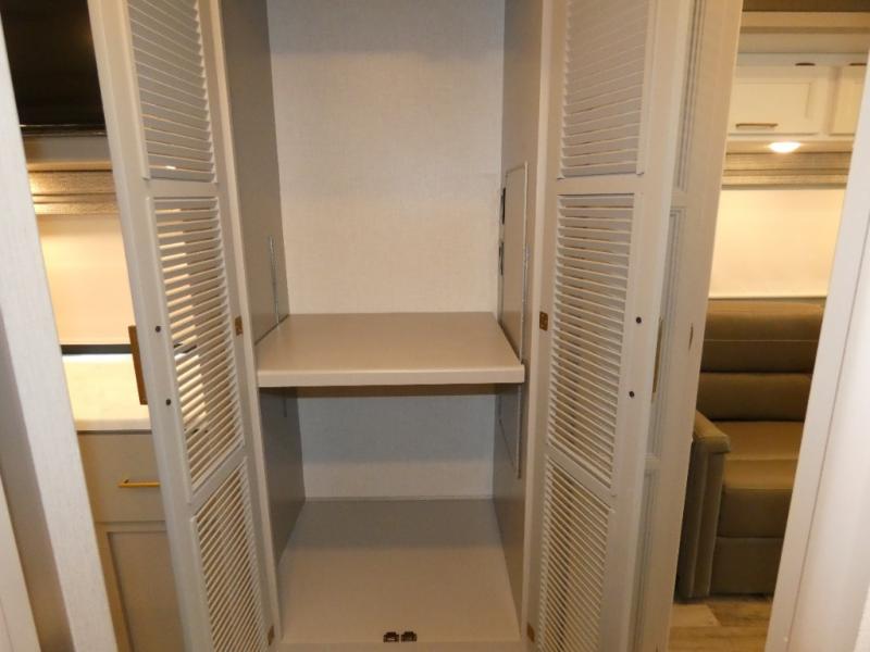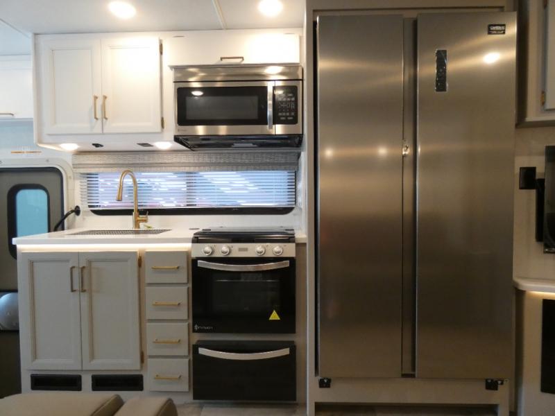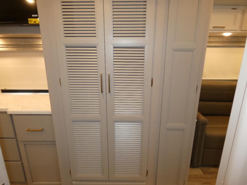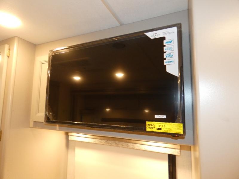 A bath and a half in this coach make it perfect for trips with friends and family. You will have tons of space provided by the two slide outs, plus a sleeping capacity of six to seven people each night. The expanding sofa bed has a great view of the 40" LED Smart TV, and the Dream Dinette will be great for meal times and game night. Whip up a hearty meal on the three burner gas cooktop, or use the convenient over-the-range microwave oven. There is also a 19 cu. ft. residential double door stainless refrigerator and a pantry for food storage. You'll be very pleased with the master bedroom that includes a king bed, a 32" LED Smart TV, and a closet to keep your clothes wrinkle-free.