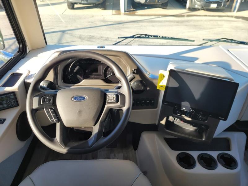 With any Hurricane Class A gas motorhome by Thor Motor Coach you will appreciate solid construction materials, like the premium one-piece roof, residential vinyl flooring and the automatic leveling jacks with touchpad controls for ease and efficiency. Each model sits on a Ford F-53 chassis with a 7.3L Triton V8 engine for power you can feel, plus there is an 8,000 lb. trailer hitch with a 7-pin round connector to pull your car along. The Rapid Camp+ multiplex system will allow you to easily set up camp from the convenient 7" touchscreen provided, and the Winegard ConnecT WiFi extender +4G will let you catch up on work if needed. The Hurricane includes pressed laminated countertops inside, as well as window privacy roller shades, decorative glass and tile in the kitchen, and many more at-home comforts.