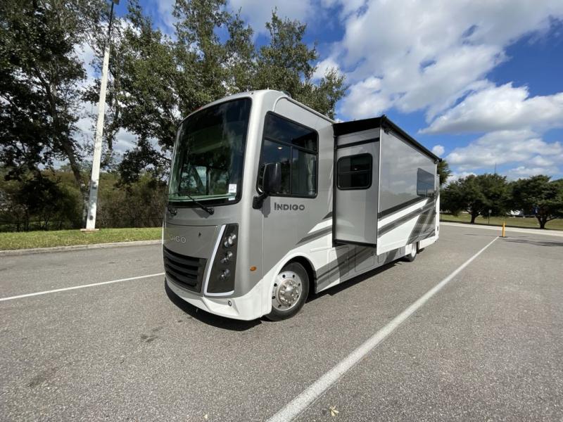 There's something for everyone in the Thor Motor Coach Indigo Class A gas motorhome! Built on the Ford F-53 chassis, with family-friendly designs and features that will make your life easier, these are worth considering. The 7.3L PFI V8 engine offers 335HP and 468 lb.-ft. of torque for power you can rely on, and the one-piece domed roof membrane is ultra durable. Residential vinyl flooring throughout is comfortable and easy to care for, while the solid surface countertops make your kitchen look great. Multiple TVs means there's no fighting over what to watch, and the Winegard ConnecT 5.0 Wi-Fi extender will help keep you connected as you camp. Each model also includes a 300-watt solar charging system, dual 13,500 BTU roof A/C units, a tankless water heater, and many more hassle-free amenities!