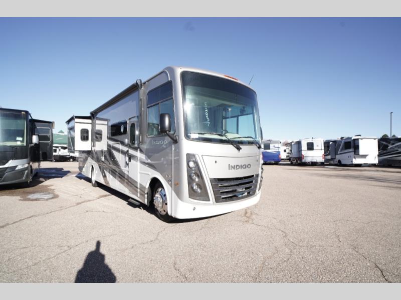 There's something for everyone in the Thor Motor Coach Indigo Class A gas motorhome! Built on the Ford F-53 chassis, with family-friendly designs and features that will make your life easier, these are worth considering. The 7.3L PFI V8 engine offers 335HP and 468 lb.-ft. of torque for power you can rely on, and the one-piece domed roof membrane is ultra durable. Residential vinyl flooring throughout is comfortable and easy to care for, while the solid surface countertops make your kitchen look great. Multiple TVs means there's no fighting over what to watch, and the Winegard ConnecT 5.0 Wi-Fi extender will help keep you connected as you camp. Each model also includes a 300-watt solar charging system, dual 13,500 BTU roof A/C units, a tankless water heater, and many more hassle-free amenities!