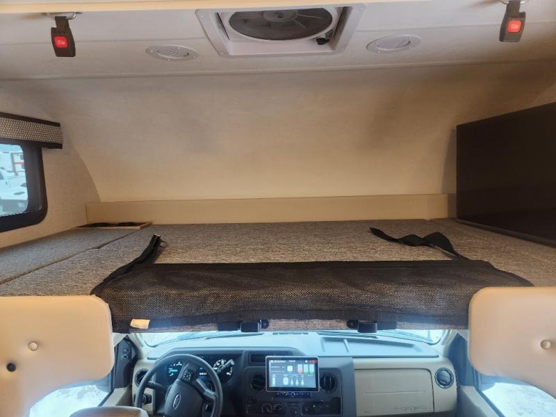 The Outlaw Class C gas motorhome toy hauler starts with the durable Ford E-Series chassis with a powerful 7.3L V8 engine that will allow you to adventure on! The 8,000 lb. hitch will be perfect for your car or motorcycle trailer, and the 10" touchscreen with a back-up monitor will let you maneuver the campground like a pro. This coach includes a Winegard ConnecT 2.0 WiFi/4G/TV antenna for all your connection needs, or you may want to unplug for a while with the 100-watt solar charging system with a power controller. The one-piece fiberglass front cap and sterling fiberglass exterior with a graphics package is sure to be eye-catching, and automatic leveling jacks come standard for easy set-up. Head inside to find pressed laminate countertops throughout, leatherette furniture, residential vinyl flooring, plus many more comforts you won't want to travel without!