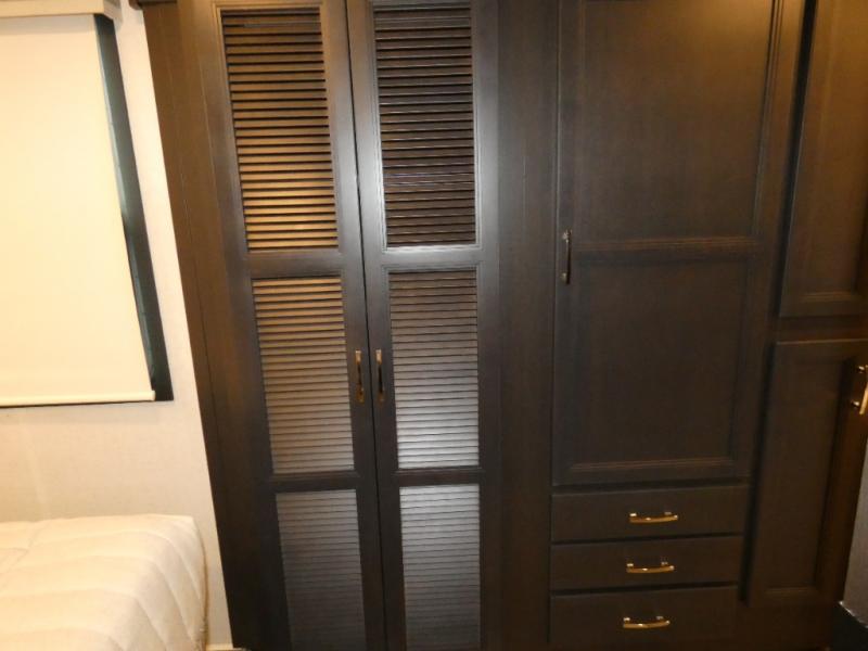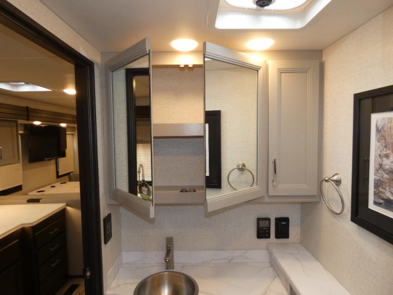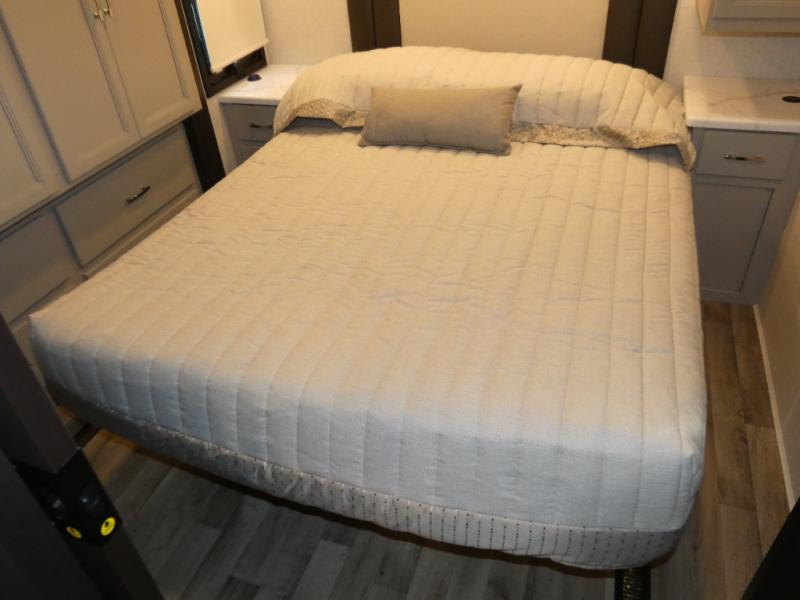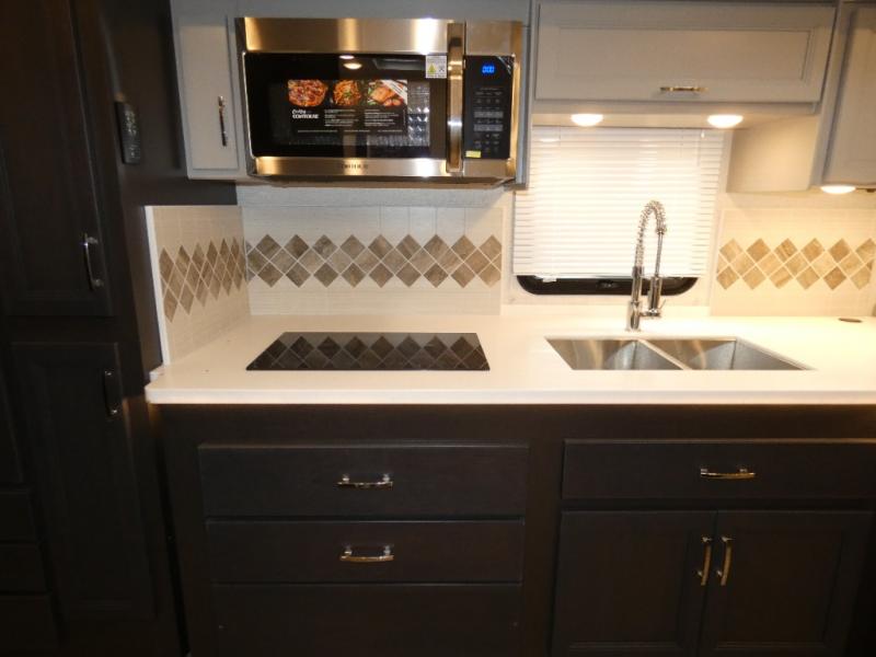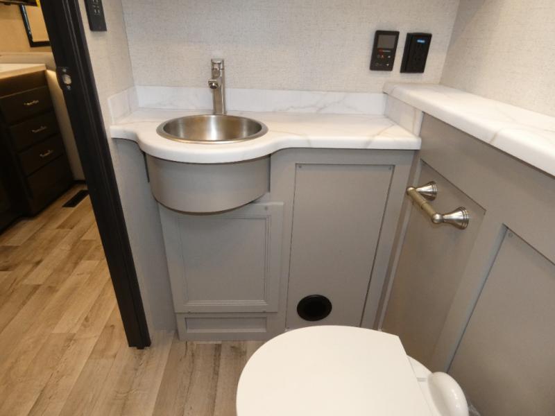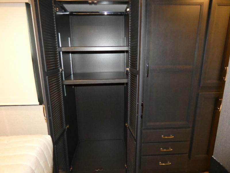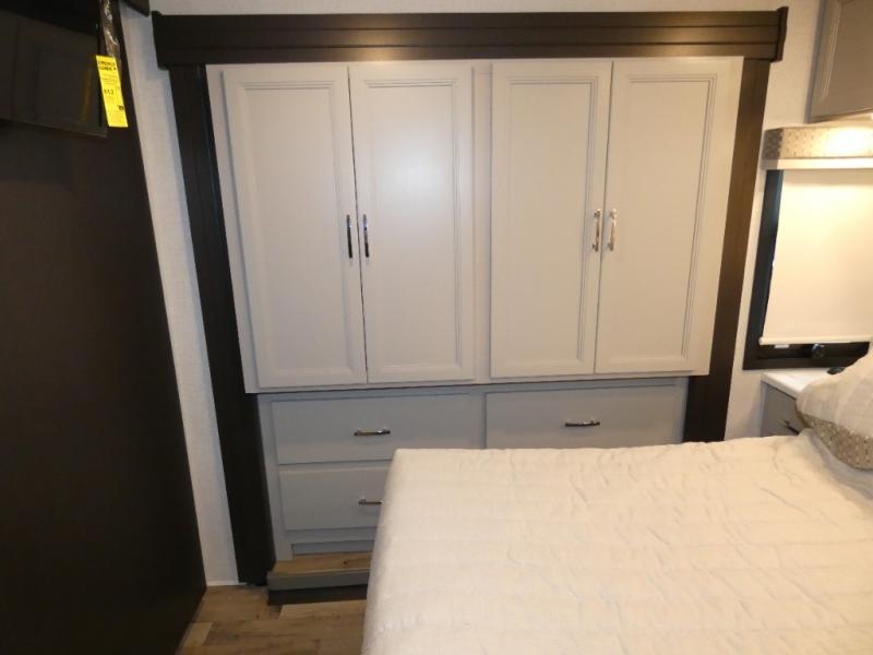 This motorhome is ready to hit the road whenever you are! The 48" x 74" bunk over cab provides sleeping space in addition to the rear private bedroom which has a Tilt-A-View inclining queen bed for a good night's rest, a closet slide, a 32" LED TV to watch your favorite movies in comfort, and an area that has stacking washer and dryer prep next to a closet and pantry. Freshen up each morning in the full bathroom with the 30" x 36" shower, and enjoy entertainment even outdoors with the outside TV!