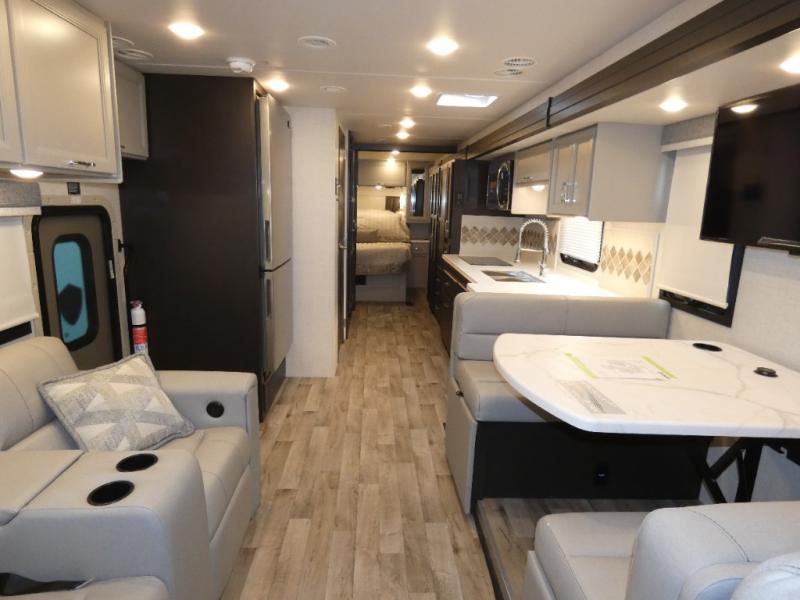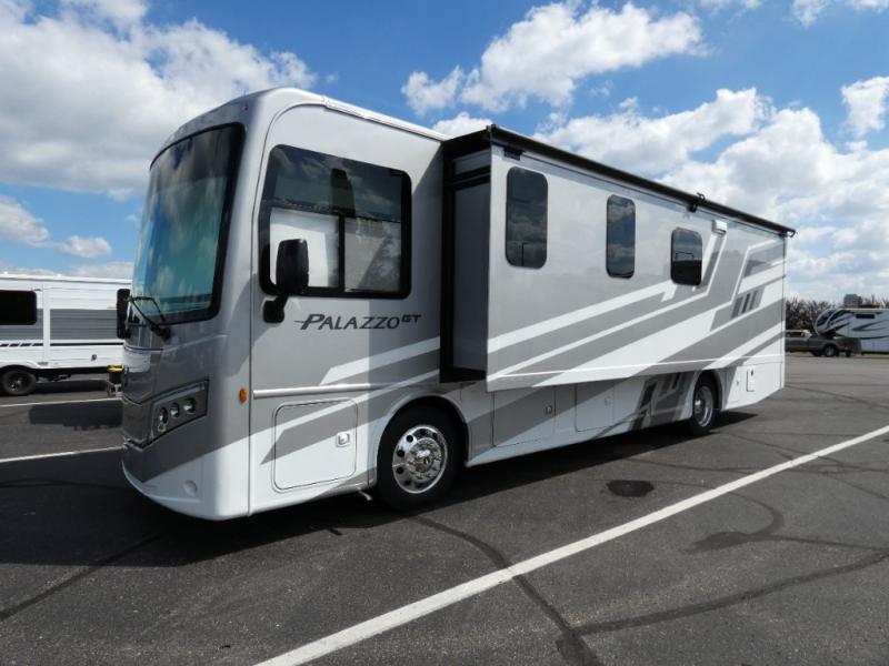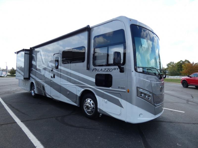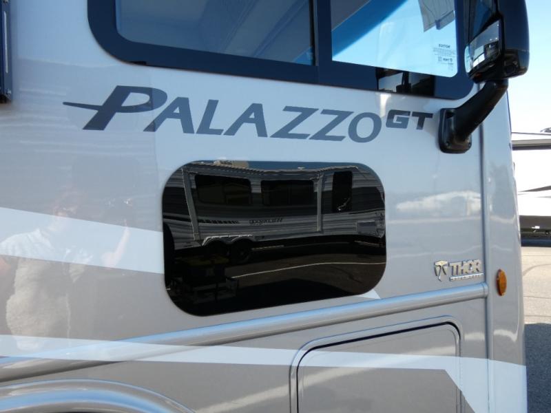 Start traveling affordably with the ultimate comfort and conveniences with any one of these Thor Motor Coach Palazzo GT Class A diesel motorhomes! They are built on a robust foundation with the Freightliner XC-S straight rail chassis with Atlas foundation, and powered by a Cummins diesel engine. The full body paint package with gel-coated sidewalls will turn heads on the highway and the invisible front paint protection will protect it from road debris. The inviting interiors have everything you need to feel right at home with features like an electric fireplace, easy-to-maintain rolled vinyl flooring, solid surface countertops, and residential refrigerator to fit your whole grocery haul. Come find your favorite one today!