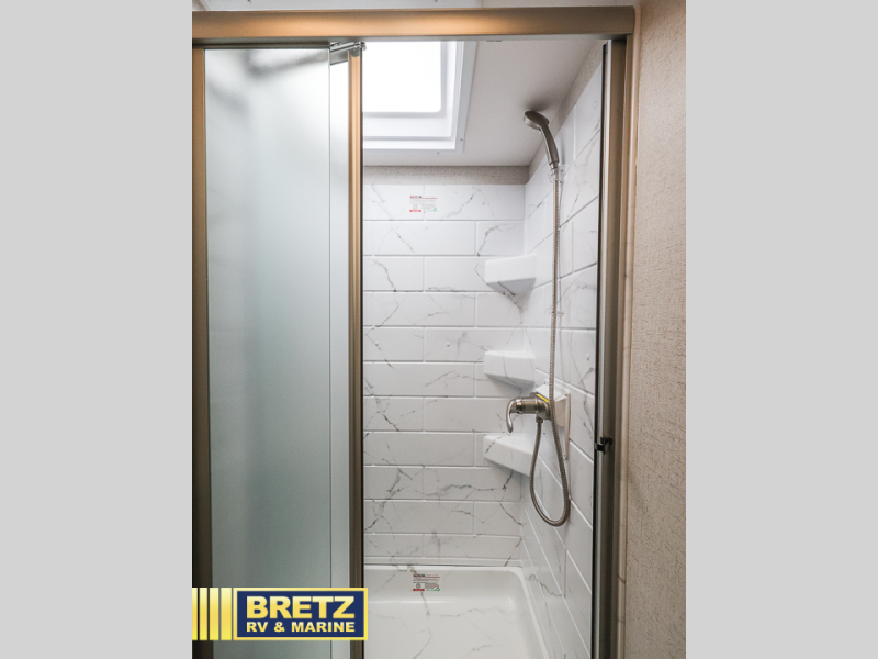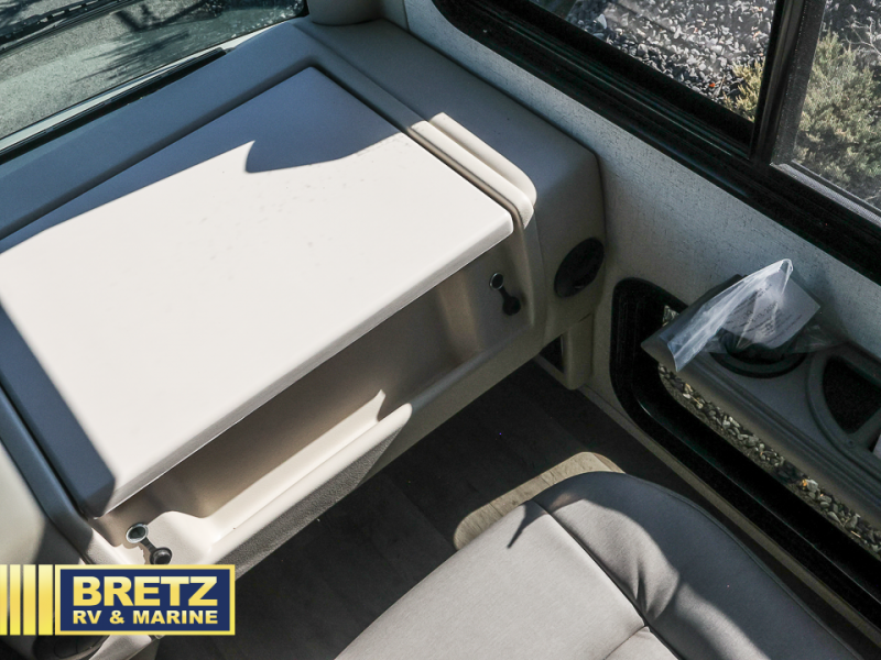 This motorhome is ready to hit the road whenever you are! The 48" x 74" bunk over cab provides sleeping space in addition to the rear private bedroom which has a Tilt-A-View inclining queen bed for a good night's rest, a closet slide, a 32" LED TV to watch your favorite movies in comfort, and an area that has stacking washer and dryer prep next to a closet and pantry. You could even transform the 80" Dream Dinette and 67" jackknife sofa into extra sleeping spaces or switch out the sofa for the optional 67" theater seats. Freshen up each morning in the full bathroom with the 30" x 36" shower, and enjoy entertainment even outdoors with the outside TV!