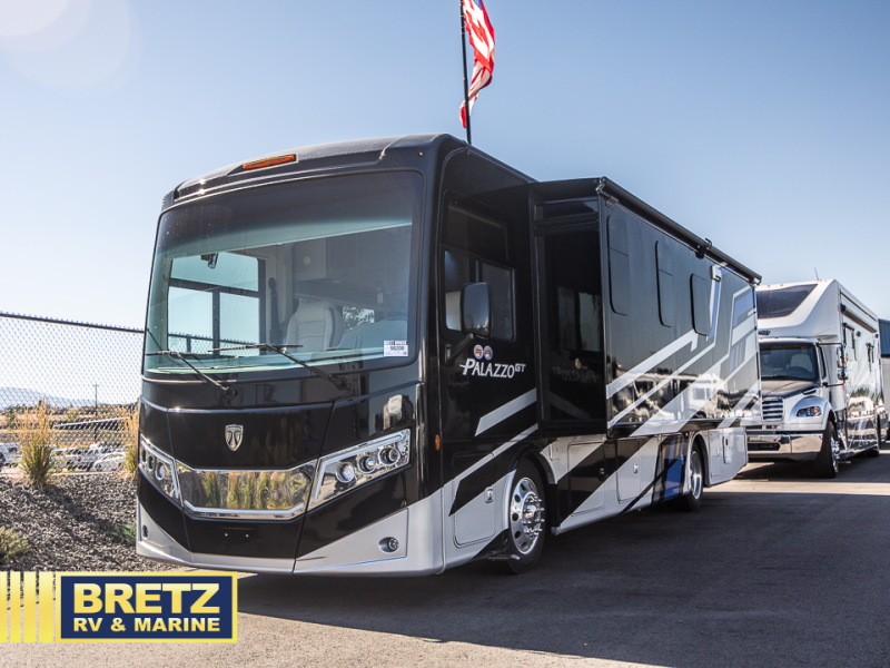 Start traveling affordably with the ultimate comfort and conveniences with any one of these Thor Motor Coach Palazzo GT Class A diesel motorhomes! They are built on a robust foundation with the Freightliner XC-S straight rail chassis with Atlas foundation, and powered by a Cummins diesel engine. The full body paint package with gel-coated sidewalls will turn heads on the highway and the invisible front paint protection will protect it from road debris. The inviting interiors have everything you need to feel right at home with features like an electric fireplace, easy-to-maintain rolled vinyl flooring, solid surface countertops, and residential refrigerator to fit your whole grocery haul. Come find your favorite one today!