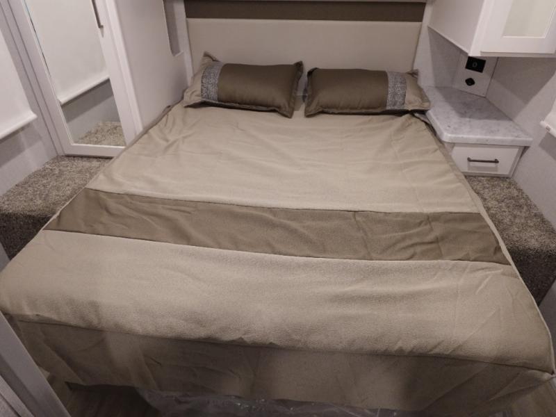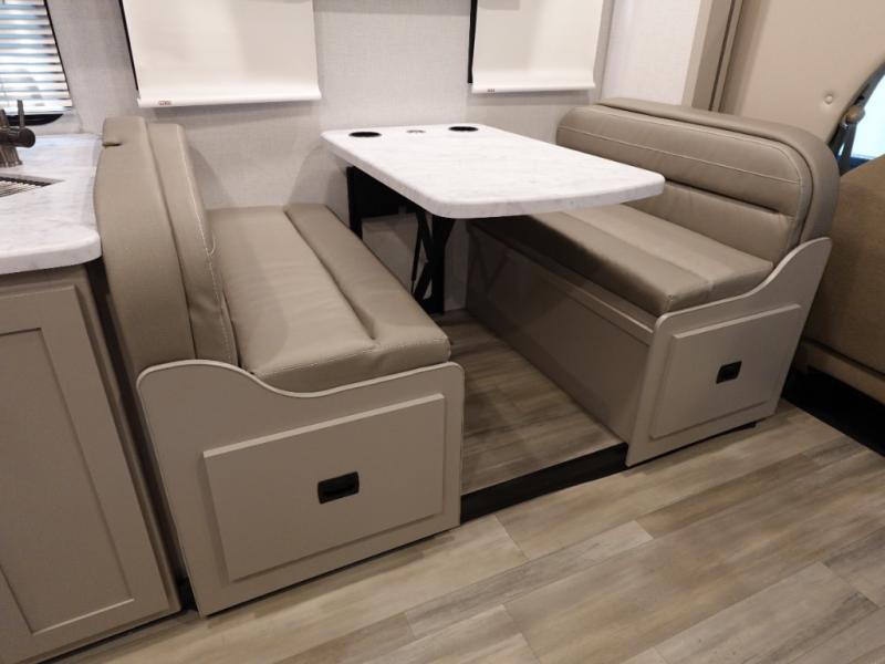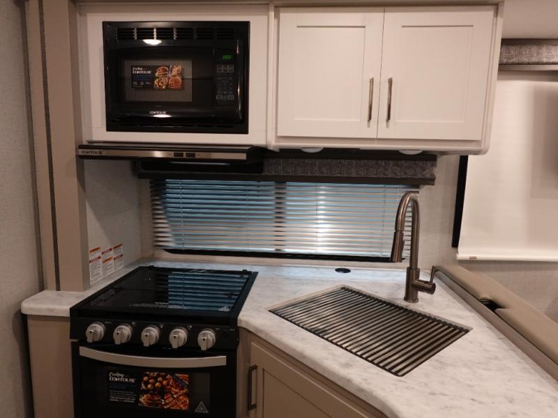 Plan to stay awhile in this spacious coach for five. Once you park for the day, you can start lunch on the three burner cooktop or in the microwave oven. There is a Dream dinette where you can dine at plus 68" theater seating to relax after your meal. A full bath includes a 24" x 36" shower to freshen up each day, and you'll feel right at home in the rear private bedroom. Here, you'll find an RV queen bed, dual bedside closets, and TV prep if you want the option to watch movies in bed.