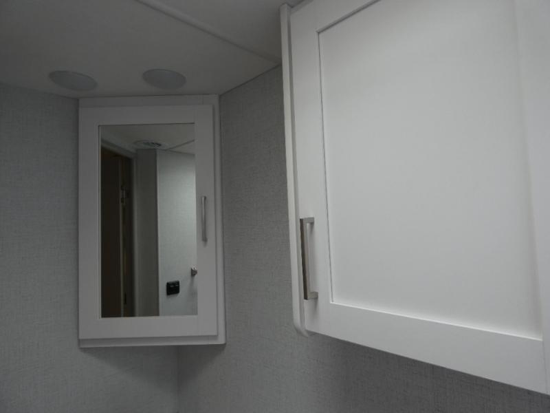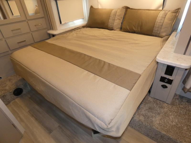 Pack your bags and head across the country in this double slide out coach. The Dream dinette and theater seating provide a place to dine, relax, and even let extra guests sleep over who don't claim the cab-over bunk. A three burner gas cooktop and microwave oven will let you create meals each day, and a 12V refrigerator will keep your drinks cold! The rear of this coach is shared with the full bath and semi-private bedroom with a privacy curtain. You're sure to get a great night's rest on the king bed, and there is a large bedroom closet to keep your clothes wrinkle-free. There is also a second closet with washer and dryer prep if you choose to add these appliances.