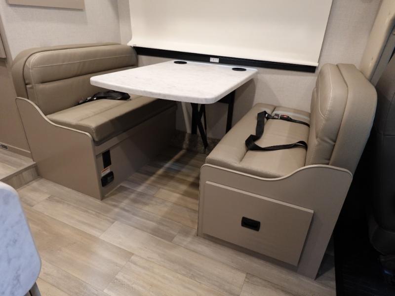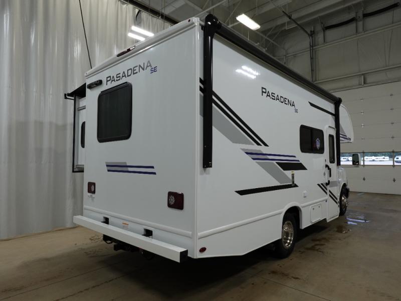 With any Pasadena SE Class C gas motorhome by Thor Motor Coach, you will find convenient amenities, a modern interior, and a reliable Chevy chassis. There is a one-piece fiberglass front cap, and premium one-piece roofing for added strength. Residential vinyl flooring will be easy to keep clean, and you'll love the LED lighting, pressed laminate countertops throughout, and full-extensions ball-bearing drawer guides. These motorhomes also include a generator and a 30-amp shoreline power cord to keep you going, along with a tankless water heater to ensure your comfort!
