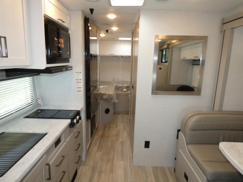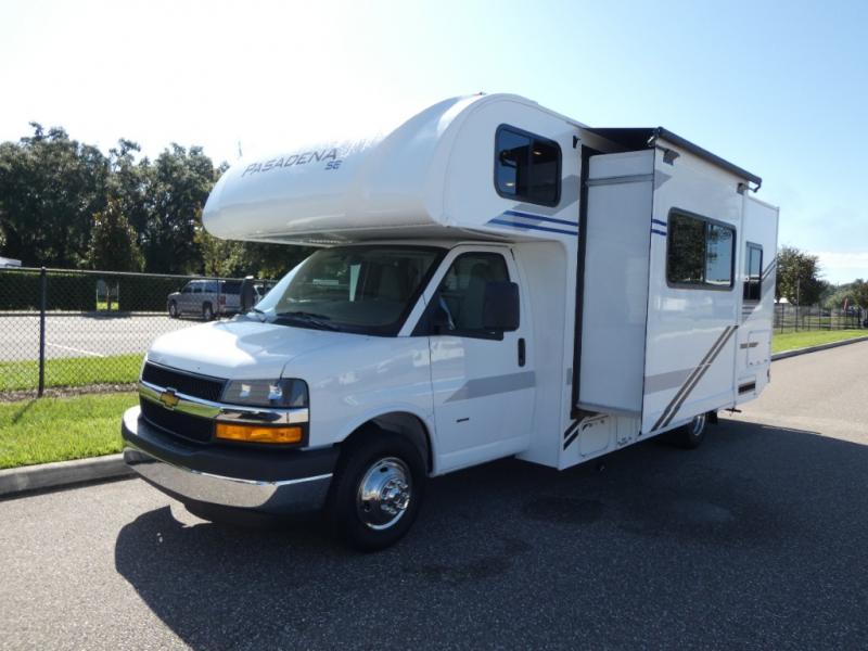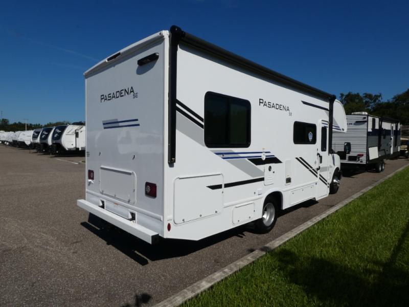 With any Pasadena SE Class C gas motorhome by Thor Motor Coach, you will find convenient amenities, a modern interior, and a reliable Chevy chassis. There is a one-piece fiberglass front cap, and premium one-piece roofing for added strength. Residential vinyl flooring will be easy to keep clean, and you'll love the LED lighting, pressed laminate countertops throughout, and full-extensions ball-bearing drawer guides. These motorhomes also include a generator and a 30-amp shoreline power cord to keep you going, along with a tankless water heater to ensure your comfort!