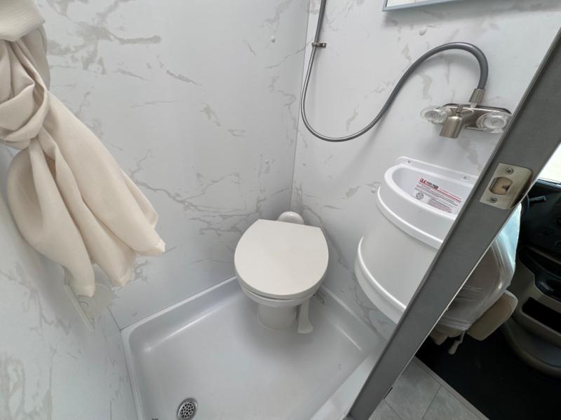 With any Quantum ESpec Essential Class C gas motorhome by Thor Motor Coach, you will find convenient amenities, a modern interior, and a reliable Ford E-Series chassis, with an optional Chevy chassis on select models to power your adventures. There is welded tubular aluminum roof and sidewall cage construction, a one-piece fiberglass front cap, and premium one-piece Crossflex exterior roofing for added strength. Residential vinyl flooring will be easy to keep clean, and you'll love the sleek look of the Harbor Collection, three-toned cabinets. These motorhomes also include a 50 state 4.0 kW dual gas/LP generator and a 30-amp shoreline power cord to keep you going, along with a tankless water heater and 13,500 roof front A/C to ensure your comfort!