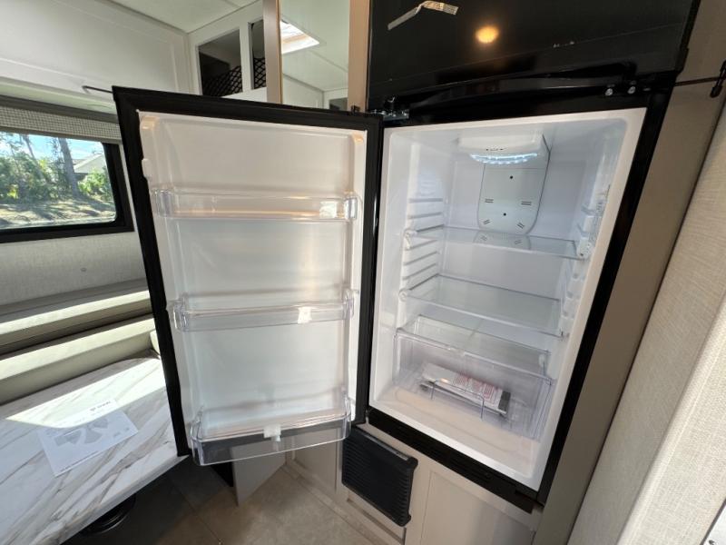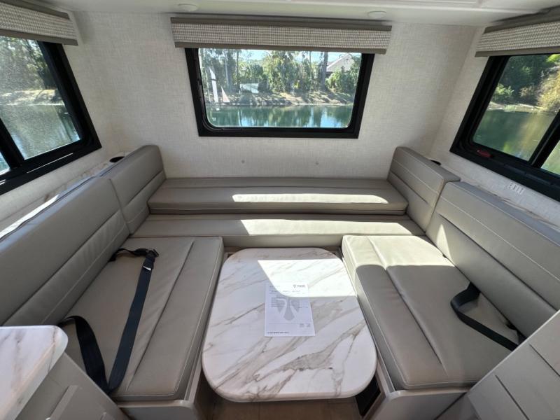 This compact, yet cozy coach is perfect for trips to the campground each weekend! Once you've reached your destination, you can set up the 11' power awning, unload the exterior storage compartments, and relax in your camp chairs. The two burner gas cooktop and convection microwave with an air fryer will let you make meals each day, and there is a 12V refrigerator to keep food fresh. A flip-up counter is another great feature that will give you more prep space! You can freshen up in the wet bath, grab your night clothes from the closet, then convert the U-shaped dinette into a 54" x 77" bed for a great night's rest!