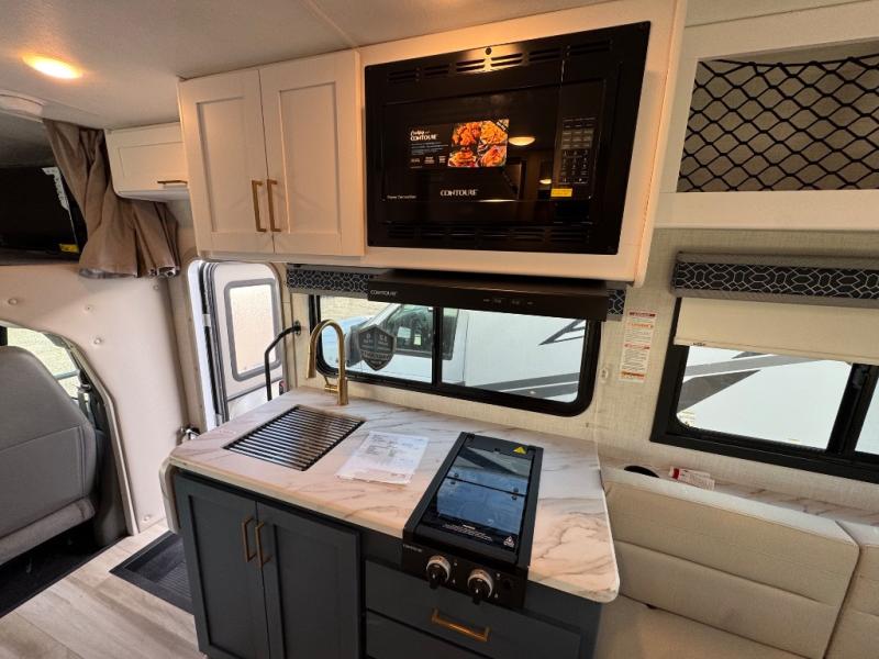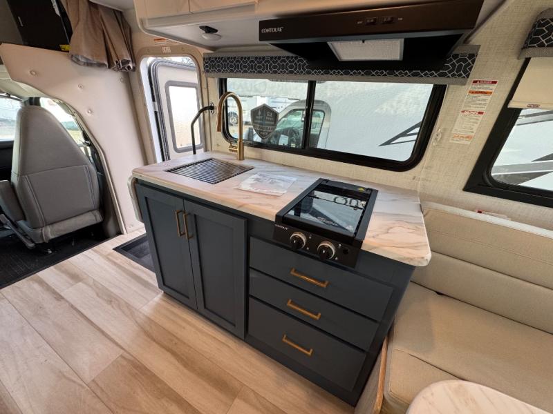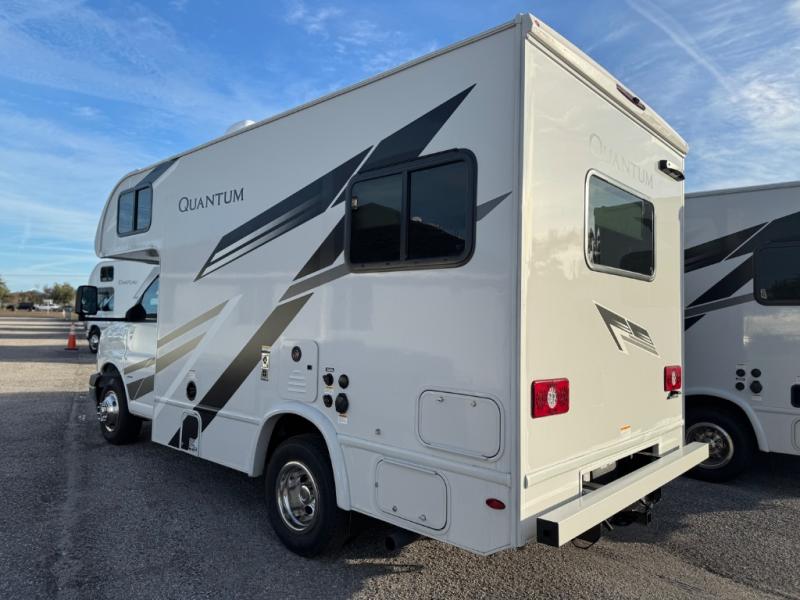 With any Quantum ESpec Essential Class C gas motorhome by Thor Motor Coach, you will find convenient amenities, a modern interior, and a reliable Ford E-Series chassis, with an optional Chevy chassis on select models to power your adventures. There is welded tubular aluminum roof and sidewall cage construction, a one-piece fiberglass front cap, and premium one-piece Crossflex exterior roofing for added strength. Residential vinyl flooring will be easy to keep clean, and you'll love the sleek look of the Harbor Collection, three-toned cabinets. These motorhomes also include a 50 state 4.0 kW dual gas/LP generator and a 30-amp shoreline power cord to keep you going, along with a tankless water heater and 13,500 roof front A/C to ensure your comfort!