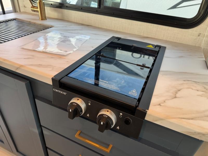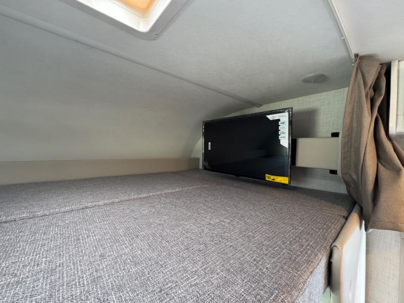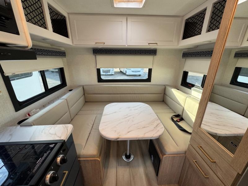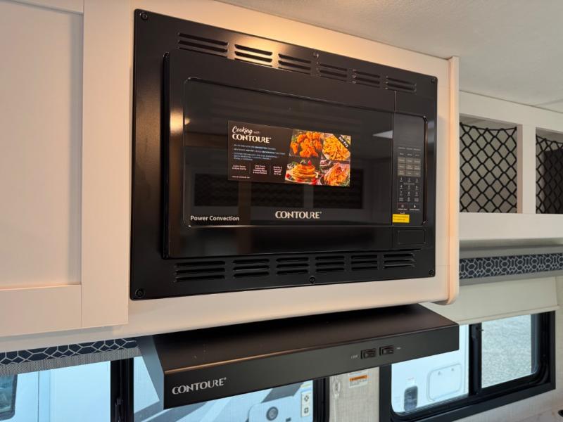 This compact, yet cozy coach is perfect for trips to the campground each weekend! Once you've reached your destination, you can set up the 11' power awning, unload the exterior storage compartments, and relax in your camp chairs. The two burner gas cooktop and convection microwave with an air fryer will let you make meals each day, and there is a 12V refrigerator to keep food fresh. A flip-up counter is another great feature that will give you more prep space! You can freshen up in the wet bath, grab your night clothes from the closet, then convert the U-shaped dinette into a 54" x 77" bed for a great night's rest!