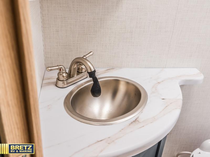 It won't be hard to find comfort in this coach for five! You can freshen up in the rear corner full bath once you've set up camp, then make lunch on the two burner gas cooktop or convection microwave with an air fryer. There is also a 12V refrigerator for cold items and a flip-up countertop for more space. Whether you dine at the Dream Dinette or take your plate outdoors under the 15' power awning, you're sure to have a great time in this motorhome. There is a semi-private bedroom with a 60" x 74" RV queen bed slide and bedroom TV prep if you want the option to watch movies in bed. And your guests can take the Dream Dinette and cab-over bunk at night!