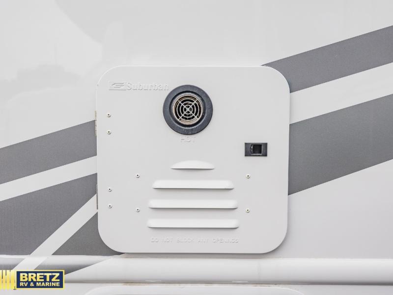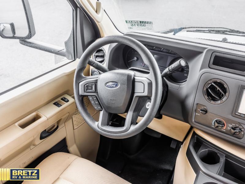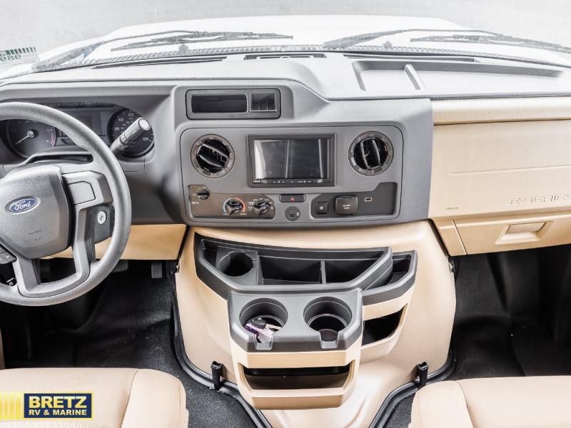 With any Quantum ESpec Essential Class C gas motorhome by Thor Motor Coach, you will find convenient amenities, a modern interior, and a reliable Ford E-Series chassis, with an optional Chevy chassis on select models to power your adventures. There is welded tubular aluminum roof and sidewall cage construction, a one-piece fiberglass front cap, and premium one-piece Crossflex exterior roofing for added strength. Residential vinyl flooring will be easy to keep clean, and you'll love the sleek look of the Harbor Collection, three-toned cabinets. These motorhomes also include a 50 state 4.0 kW dual gas/LP generator and a 30-amp shoreline power cord to keep you going, along with a tankless water heater and 13,500 roof front A/C to ensure your comfort!