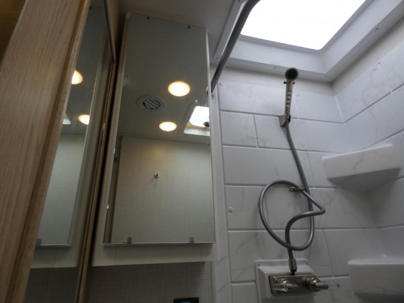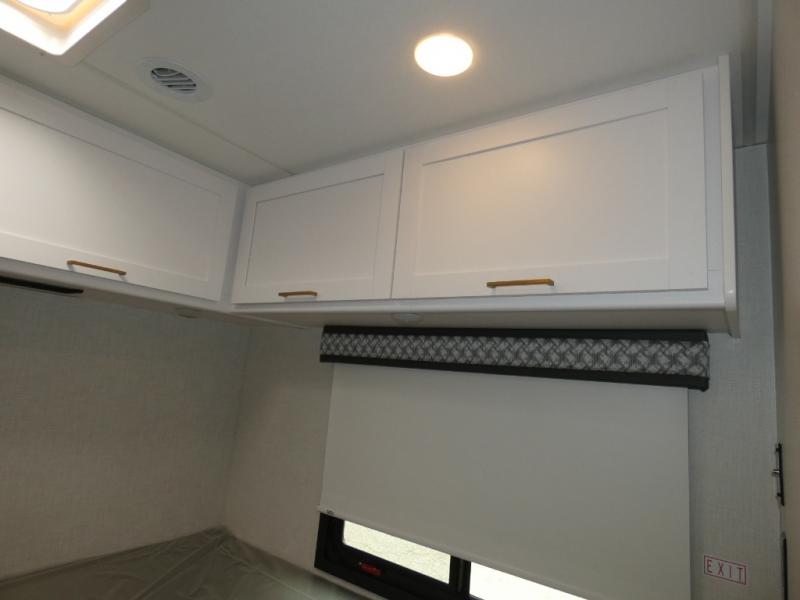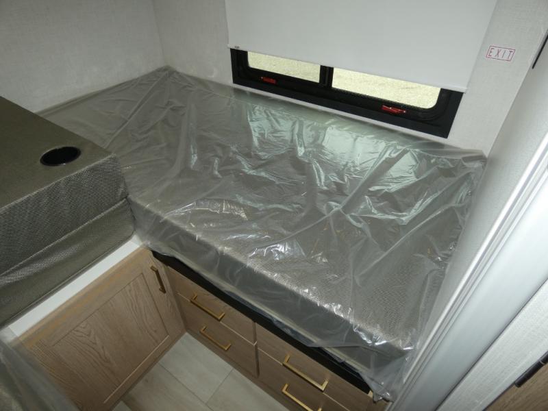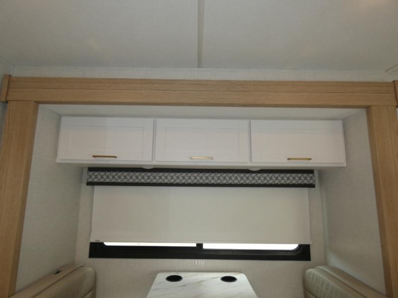 This versatile coach features twin beds with a king conversion so you can choose to sleep on your own bed, or share one big bed! The full bath includes a shower skylight that will provide more natural lighting, and there is a closet right across the hall to keep clean towels and clothes. In the morning, you can prepare breakfast on the three burner gas cooktop with an oven and glass cover or use the convenient microwave oven. There is also a 12V refrigerator to keep food fresh and a flip-up countertop for more prep space. This model also includes a Dream Dinette slide out and a 32" Smart TV in the cab-over bunk area so you can stay entertained on rainy days.
