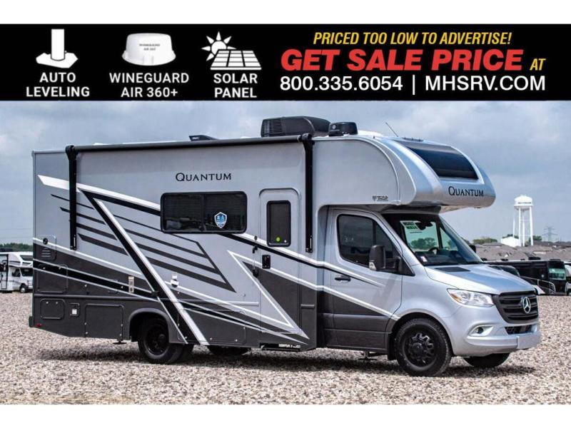 MSRP $238,434. New 2026 Thor Motor Coach Quantum Sprinter Mercedes Diesel Model MB24. This Luxury RV measures approximately 25 feet 10 inches in length and rides on the premier Mercedes Benz Sprinter chassis equipped with an Active Braking Assist system, Attention Assist, Active Lane Assist, a Wet Wiper System and Distance Regulator Distronic Plus. You will also find a tank-less water heater, generator and the ultra-high-line cabinetry from TMC that set this coach apart from the competition! Optional equipment includes the auto leveling jacks and child safety net. The all new Quantum Sprinter also features a fiberglass front cap with skylight, an power patio awning with integrated LED lighting, a multimedia dash radio with Bluetooth and navigation, remote exterior mirrors, back up system, swivel captain’s chairs, keyless entry, valve stem extensions, full extension metal ball-bearing drawer guides, 12v refrigerator with auto generator start, solid surface kitchen countertop, convection microwave oven with air fryer, outside shower, solar, , holding tanks with heat pads and much more. Shop hundreds of motorhomes including class C diesel RVs at 1 location! Choose from Thor Delano – Tiburon – Chateau – Four Winds – Quantum – Entegra Coach Qwest – Qwest SE – East to West Entrada M Class – Forester MBS – Dynamax Isata 3 and much more. We also sell quality pre-owned models such as Jayco Melbourne – Melbourne Prestige – Tiffin Wayfarer – Forest River Sunseeker MBS – Solera – Winnebago View – Navion – Vita – Porto – Renegade Vienna – Coachmen Prism – Prism Elite – Grand Design Lineage – Holiday Rambler Element and much more. Visit MHSRV.com for our complete line-up and the sale prices that have made us the #1 volume selling motor home dealership in the world 12 years in a row! For additional details on this unit and our entire inventory including brochures, window sticker, videos, photos, reviews & testimonials as well as additional information about Motor Home Specialist and our manufacturers please visit us at MHSRV.com or call 800-335-6054. At Motor Home Specialist, we DO NOT charge any prep or orientation fees like you will find at other dealerships. All sale prices include a 200-point inspection, interior & exterior wash, detail service and a fully automated high-pressure rain booth test and coach wash that is a standout service unlike that of any other in the industry. You will also receive a thorough coach orientation with an MHSRV technician, a night stay in our delivery park featuring landscaped and covered pads with full hook-ups and much more! Read Thousands upon Thousands of 5-Star Reviews at MHSRV.com and See What They Had to Say About Their Experience at Motor Home Specialist. WHY PAY MORE? WHY SETTLE FOR LESS?
