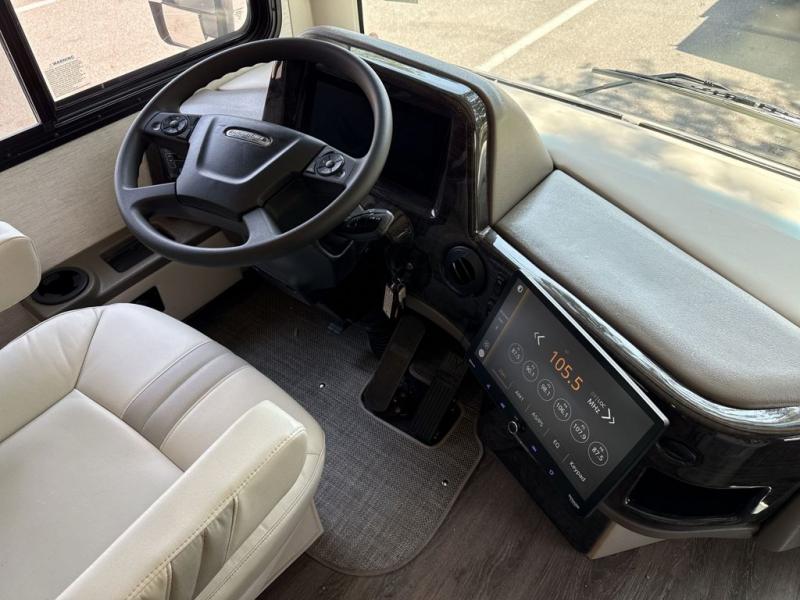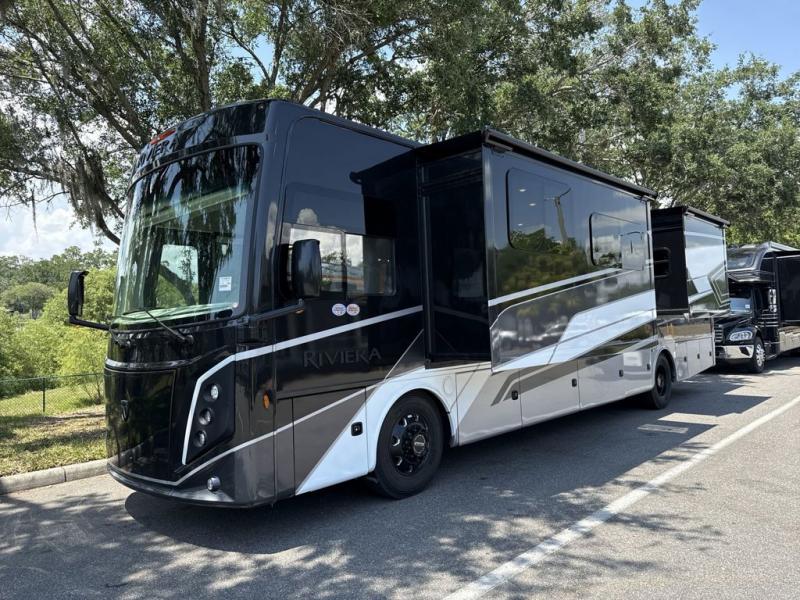 With any Riviera Class A diesel motorhome by Thor Motor Coach, you will enjoy a luxury home on wheels wherever you decide to roam! You will appreciate a capable Freightliner CS-S straight rail chassis with an Atlas foundation and better fuel mileage with the Cummins ISB-XT 6.7L diesel engine. There is a spacious basement pass-through storage for your camp gear, a powered patio awning with LED lighting, and an exterior 40" LED TV for outdoor movie nights. You will be able to enjoy your coach for years to come thanks to the durable construction materials that include a welded tubular steel floor, Vacu-Bond laminated roof, walls, and floor, plus a one-piece domed roof membrane. The elegant interior is designed with luxury vinyl tile flooring, "Wyndham" cabinetry with “Rake” style cabinet doors & nickel finish hardware. Some of the amenities you'll appreciate on each model include the RapidCamp+ multiplex wiring control system, a tankless water heater, and an Onan RV QD 6000 diesel generator. Enjoy your RV life with a Riviera Class A diesel coach!