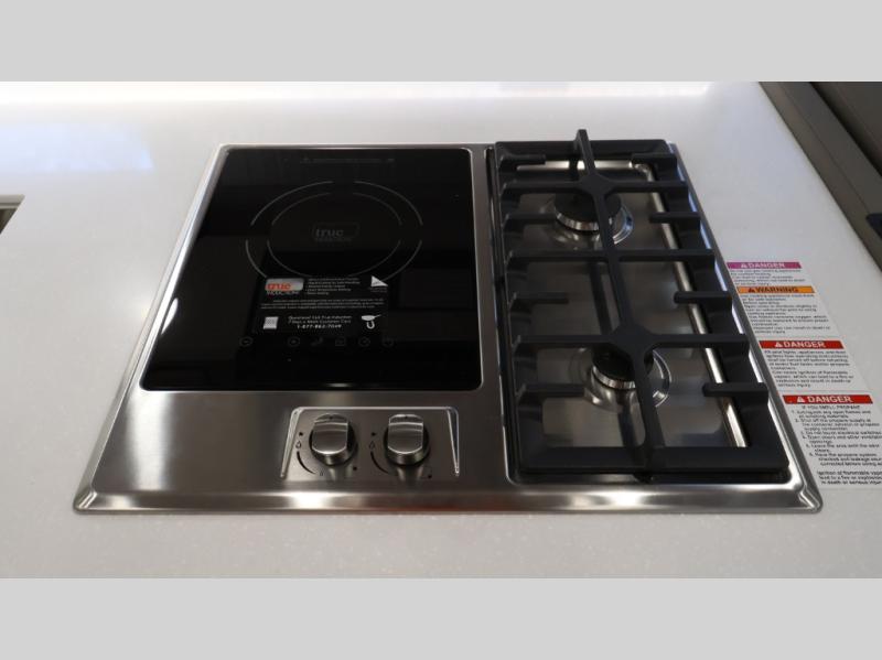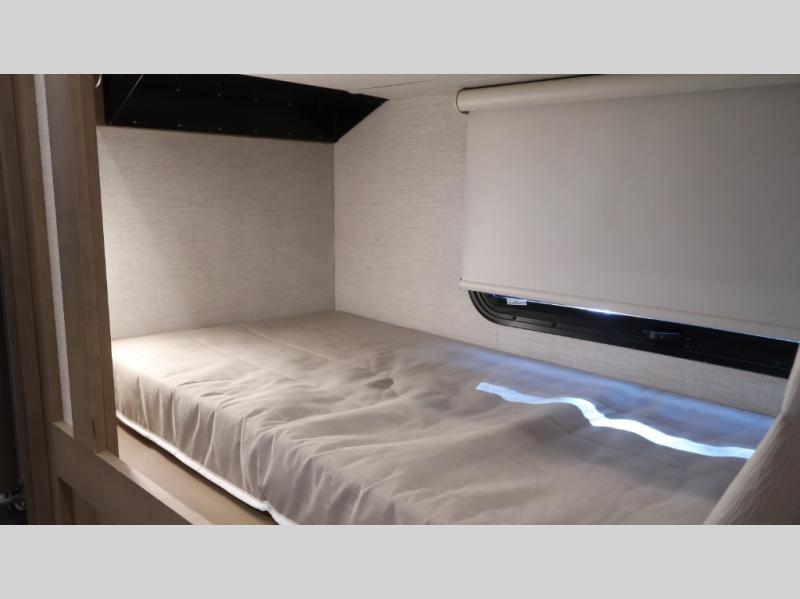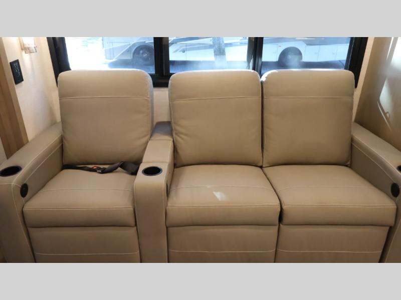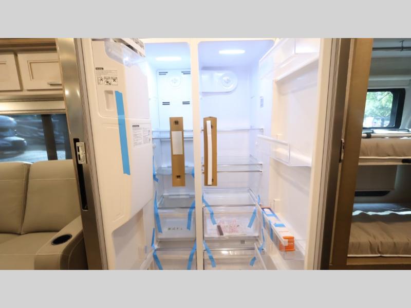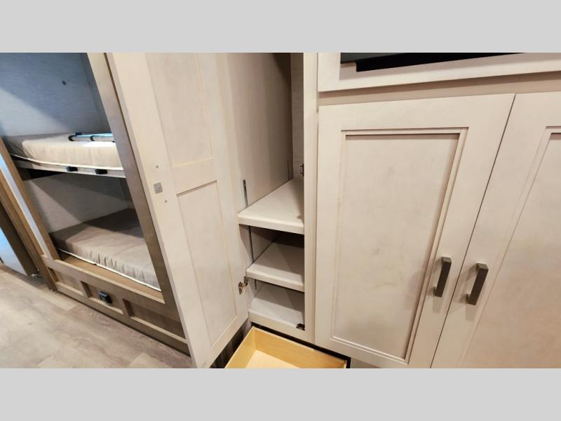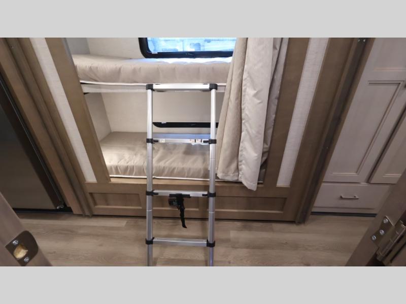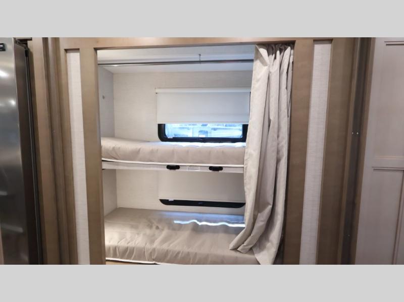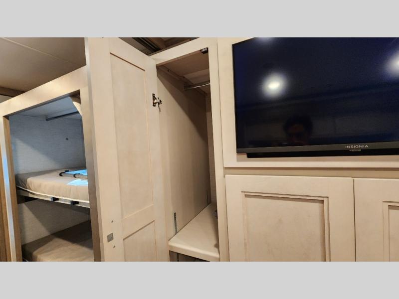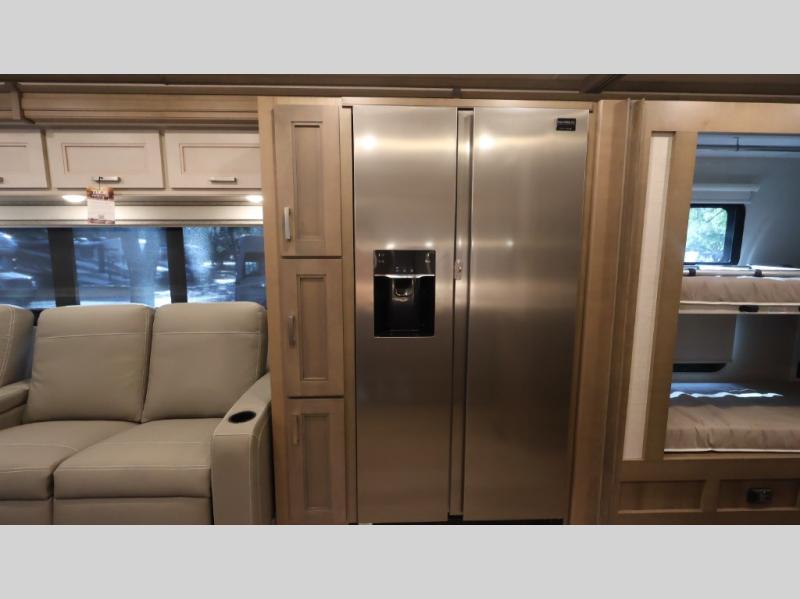 This coach can fit your whole crew thanks to the added bunk beds within the full-wall slide! There is also a drop-down overhead bunk, a Tilt-A-View inclining queen bed, a 72" Dream Dinette, and an 80" sofa for even more sleeping space! A full rear bath on board will let you clean up each morning, and there is a second full bath across from the bunks for your guests; how convenient! Head to the kitchen to prepare breakfast on the two burner electric induction cooktop or in the stainless steel over-the-range convection microwave, and there is a 19 cu. ft. side-by-side residential refrigerator where the milk and eggs can go back in. After a day outdoors relaxing under the 20' power awning and watching the game on the exterior 40" LED TV, you can head indoors to play a game at the Dream Dinette or get cozy with a book on the sofa!