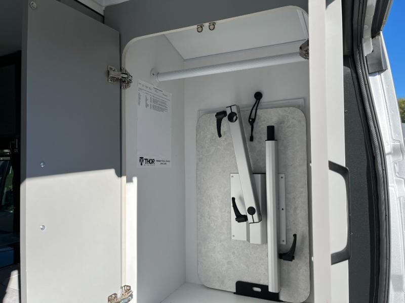 The Rize Class B gas motorhome by Thor Motor Coach allows you to experience the camping lifestyle in a compact RV packed with convenient features. There is a 3.6L Pentastar V6 engine and 276 HP to power your excursions, and the outdoor enthusiast will love the exterior sprayer. Each model includes residential vinyl flooring, Welformed interior wall panels, Euro-style upper cabinet doors, and cassette shades. You'll find solid surface countertops in the kitchen and a glass protective cover and task lighting above the cooktop to easily cook meals each day. The keyless entry system adds to the convenience found throughout these models, plus there is an exterior LP connection if you want to hook up your own grill!