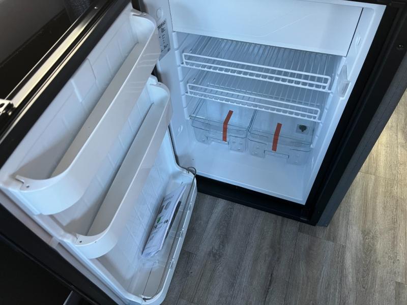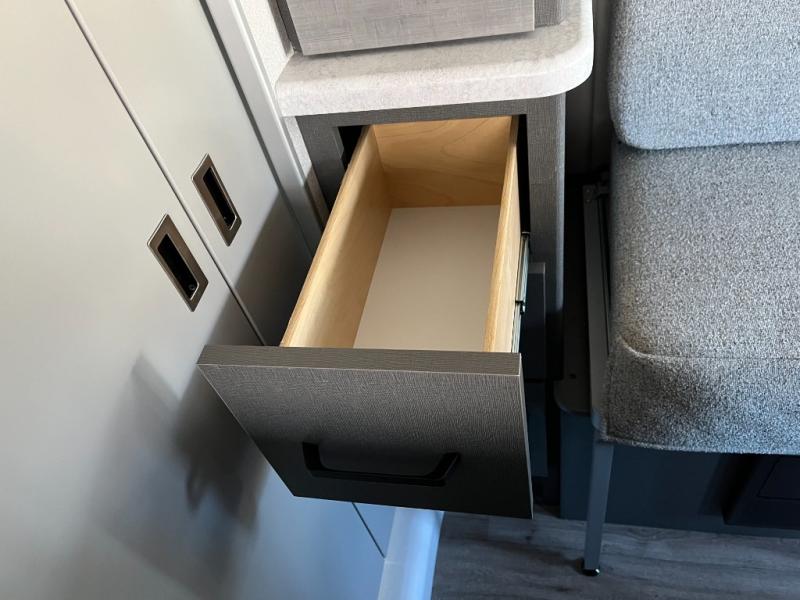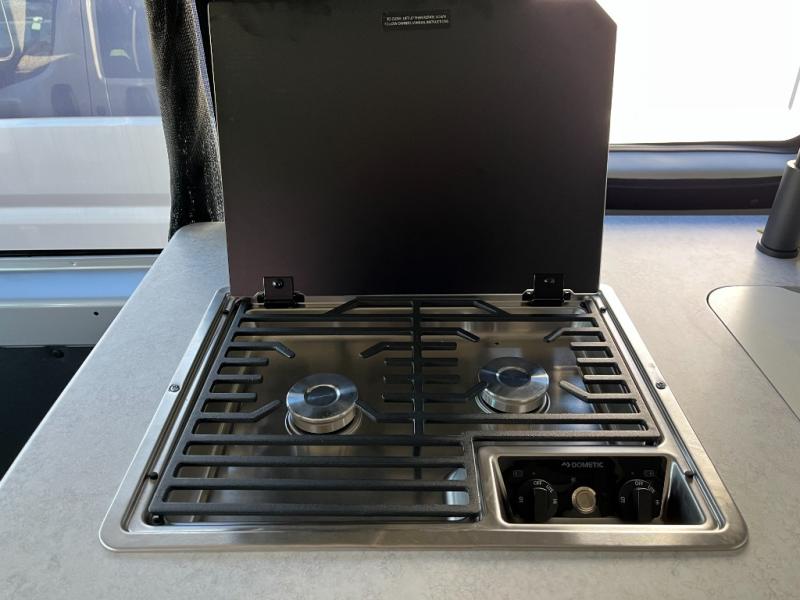 This coach is the perfect home on wheels for all your adventures. You will have everything you need, including a wet bath with a cassette toilet and pocket doors to save space. Once you have prepared breakfast on the two-burner gas cooktop, you can dine on the sofa with a removable table. This area can then be your sleeping space at night since the sofa converts into a 72" x 47" pull-out bed. Whether you're enjoying the fresh air let in by the large opening side windows, or you're sipping on a cold drink under the electric awning, you will love everything about this coach!