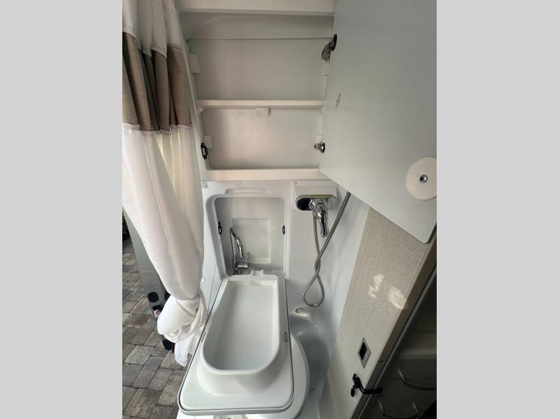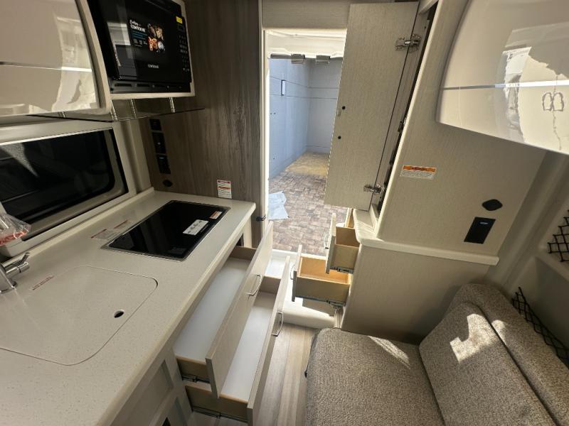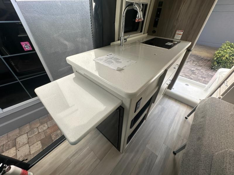 The Rize Class B gas motorhome by Thor Motor Coach allows you to experience the camping lifestyle in a compact RV packed with convenient features. There is a 3.6L Pentastar V6 engine and 276 HP to power your excursions, and the outdoor enthusiast will love the exterior sprayer. Each model includes residential vinyl flooring, Welformed interior wall panels, Euro-style upper cabinet doors, and cassette shades. You'll find solid surface countertops in the kitchen and a glass protective cover and task lighting above the cooktop to easily cook meals each day. The keyless entry system adds to the convenience found throughout these models, plus there is an exterior LP connection if you want to hook up your own grill!