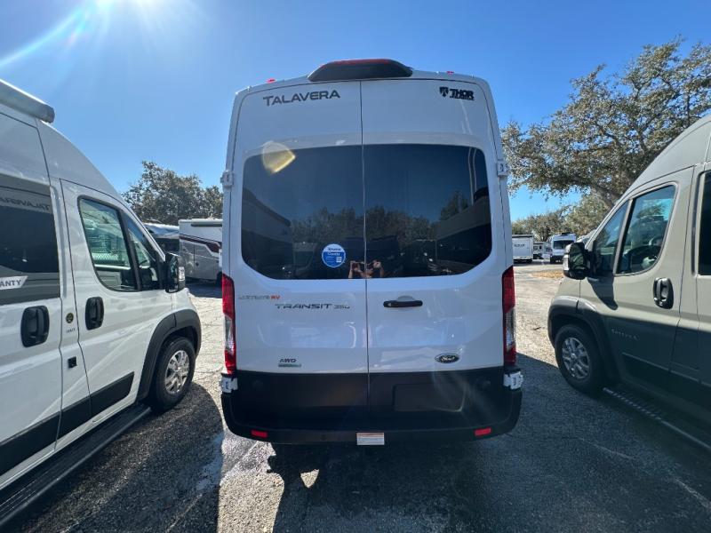 Each Thor Motor Coach Talavera Class B gas motorhome is the ultimate choice for those looking for outdoor adventures. The Ford Transit Trail™ AWD chassis with a 3" body lift, wider track, black alloy wheels and all-terrain tires will hold up through every excursion and lets you go farther into the great outdoors. The upgraded Transit Trail grille and wheel arch cladding give the exterior a rugged, purposeful look. Stay safe on the road with Transit safety features including blind spot assist, a high-resolution digital camera, reverse sensing system, side sensing system and adaptive cruise control. Inside, residential vinyl flooring is easy to clean, and the large opening side windows help bring in fresh air and natural sunlight. Come choose your favorite one today!
