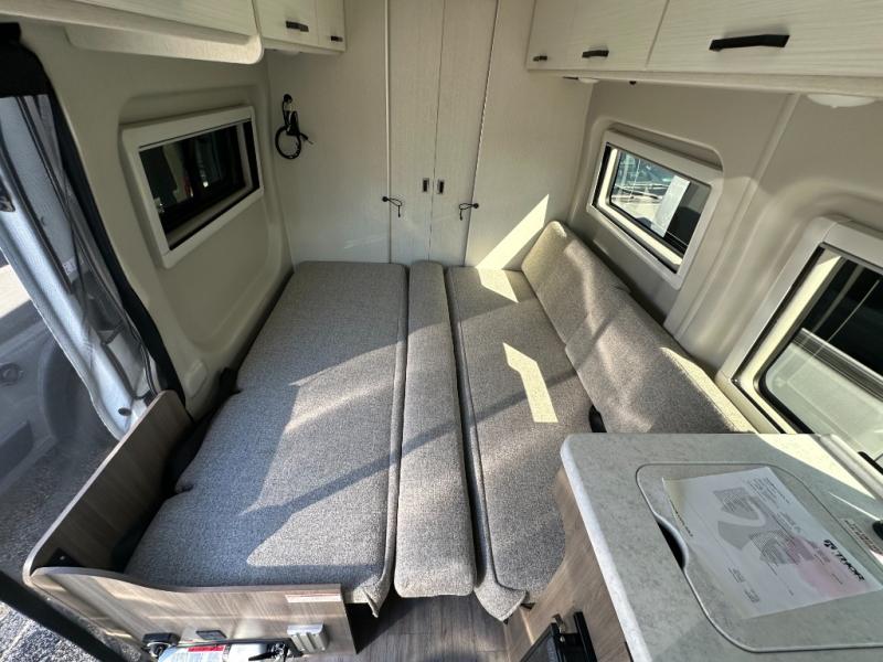 Experience the freedom of the open road with this incredible Class B motorhome! It features a rear bathroom with a closet, perfect for freshening up after a long day of adventure. The two 51" x 74" twin bed sleeper sofas provide comfortable sleeping space for up to four people. The kitchen is equipped with everything you need to whip up a delicious meal, including a microwave, refrigerator, and single-burner portable cooktop. You can also enjoy the great outdoors with the 10’ awning, perfect for relaxing in the shade or entertaining friends and family. Ideal for solo travelers, couples, or small families.