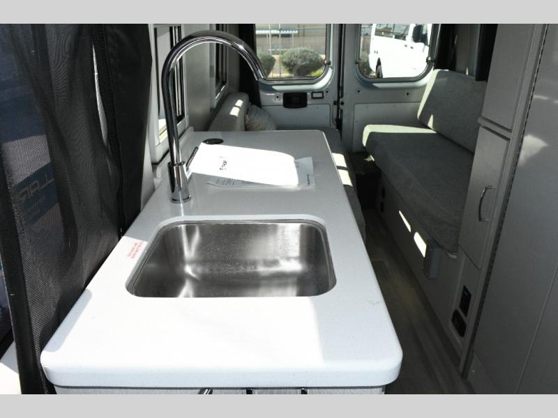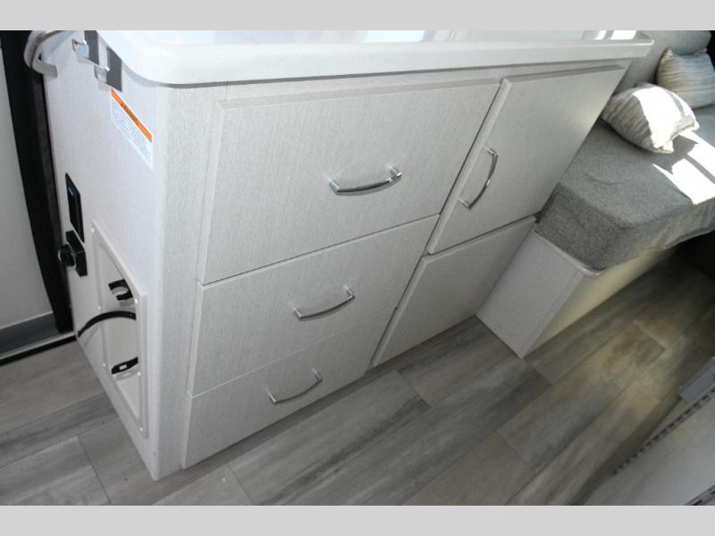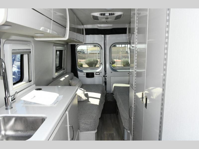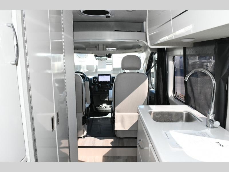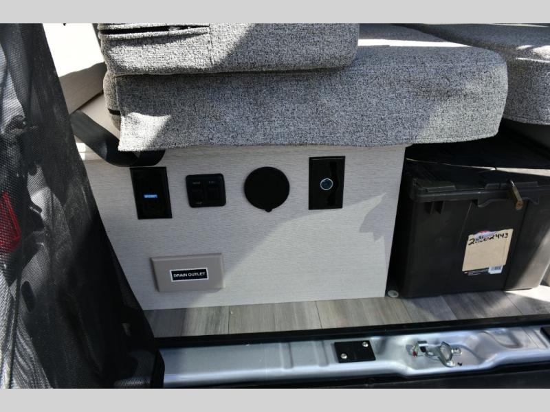Inside, thoughtful touches like swivel captain’s chairs, blackout zipper shades, pressed countertops with an undermount sink, and the Rapid Camp+® control system make operating your Tellaro Sport intuitive and convenient.