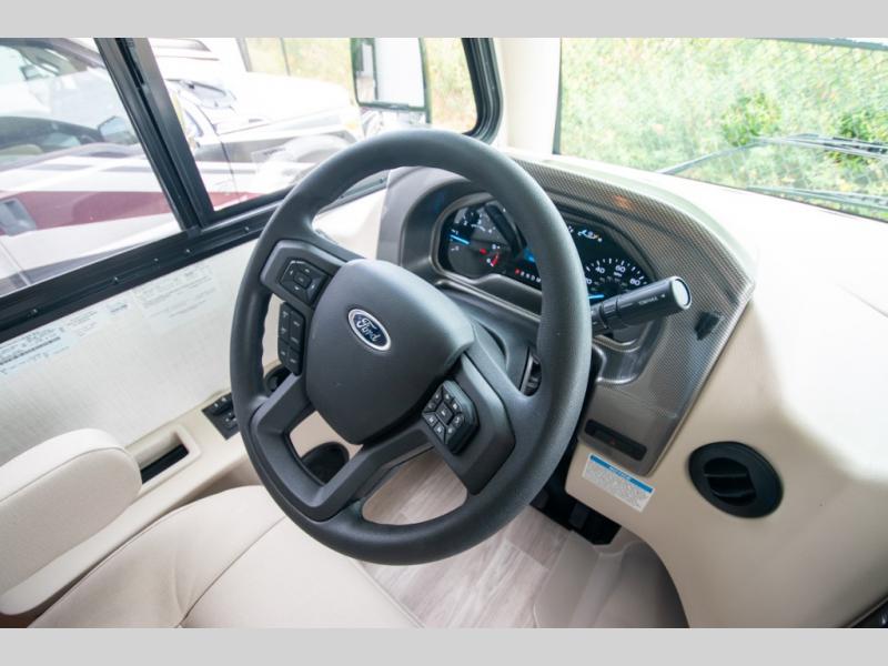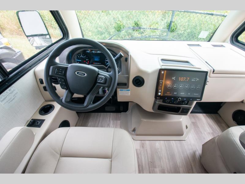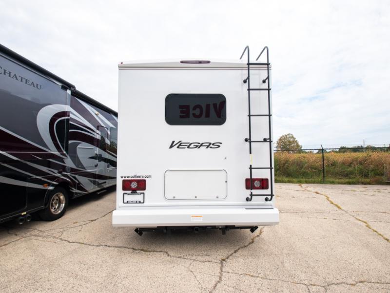 You'll find excellent drivability with the Thor Motor Coach Vegas Class A gas motorhome thanks to the Ford E-Series chassis and 7.3L V8 engine! They allow you to set up camp with ease thanks to the Rapid Camp+ multiplex system which is your all-in-one control center. You won't even have to get up while you're outside relaxing when you want the power patio awning to extend because you can open it with the click of a button on your phone. If you hook up a grill to the exterior LP connection, you'll also have a place to cook while you're outdoors, and the 100W solar panel with a controller helps you get away from the crowds. The HD-MAX exterior with graphics package will catch everyone's eye at the campground, and the premium one-piece domed roof will last through years of use.