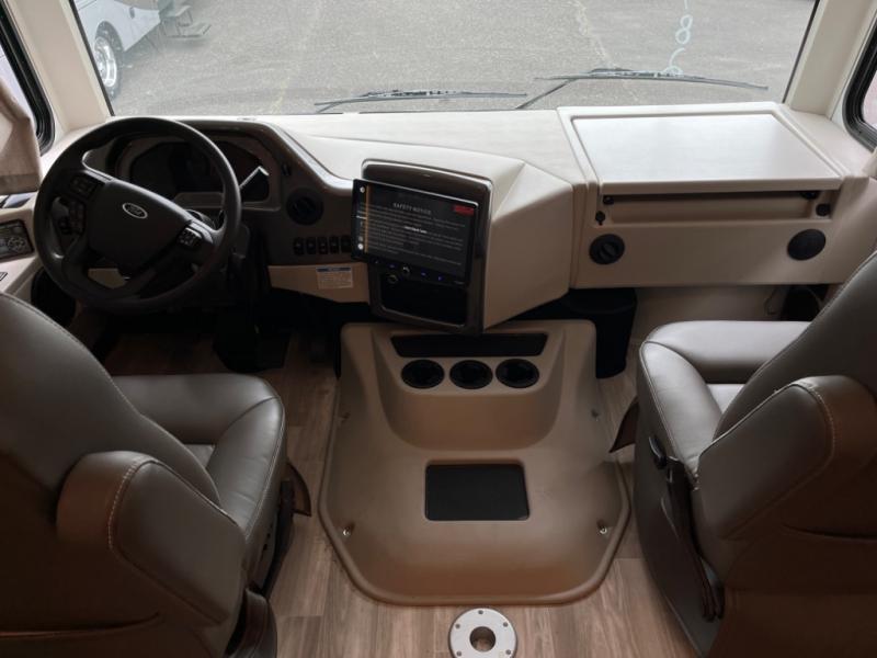 There are all sorts of adventures to be had with the Thor Motor Coach Windsport Class A gas motorhome! Built on a Ford F-53 chassis, the Windsport will gather lots of attention with its HD-MAX® exterior with graphics package. It also offers you a basement pass-through storage and a Pet-Link™ multi-purpose tie-down. There are also reclining/swivel leatherette captain's chairs to relax in while you travel. The Winegard® ConnecT™ Wi-Fi extender +4G will allow you to post on your social media or send an email from the cockpit's dash work station, and the Rapid Camp+® multiplex wiring control system with Bluetooth and 7" touchscreen will allow you to control and monitor the various electrical systems on your coach. This coach will also make you feel right at home with residential vinyl flooring, decorative glass and tile backsplash, a designer headboard, bedspread, and pillow shams, and many more comforts!
