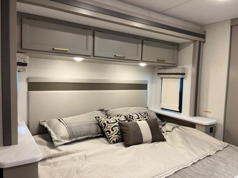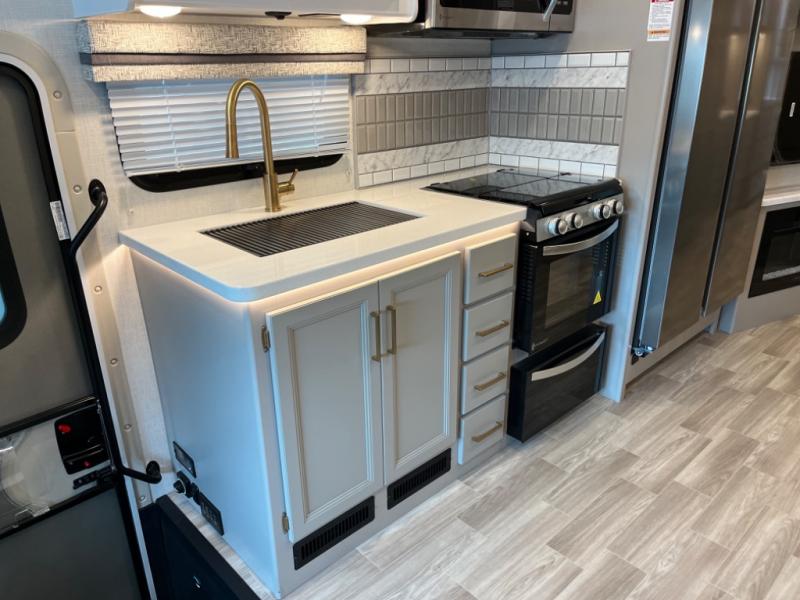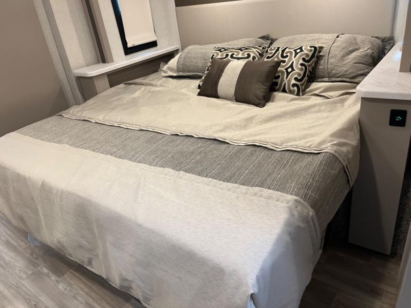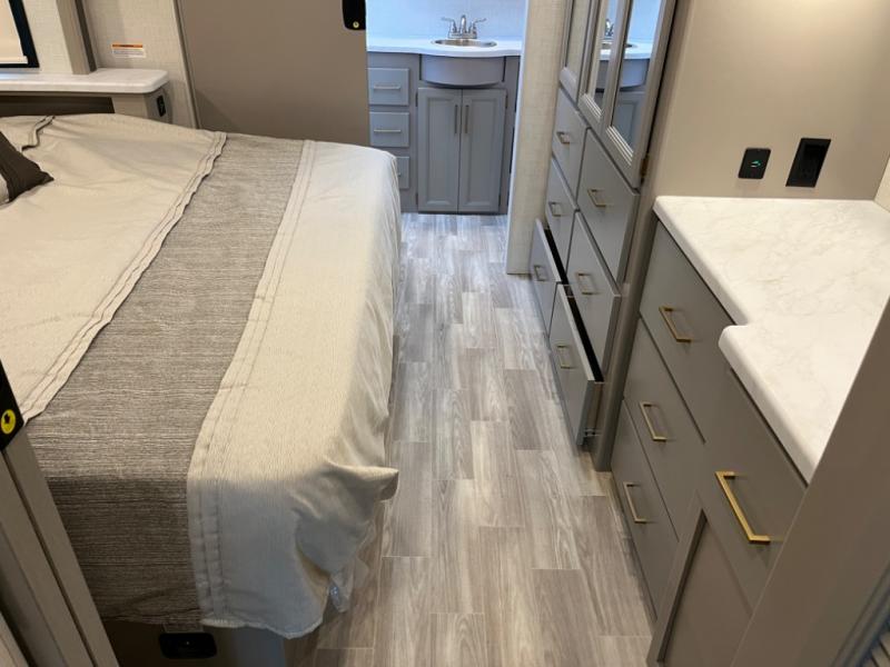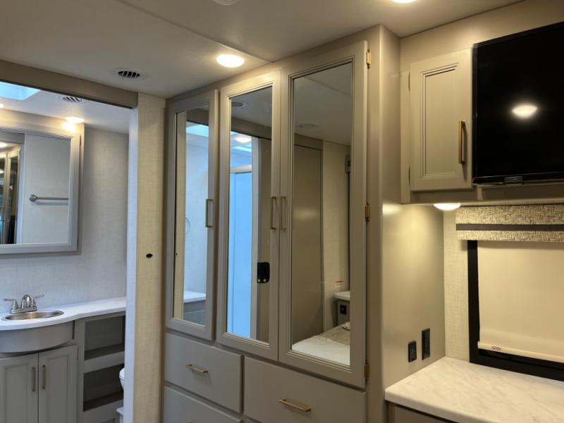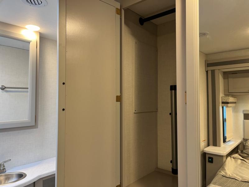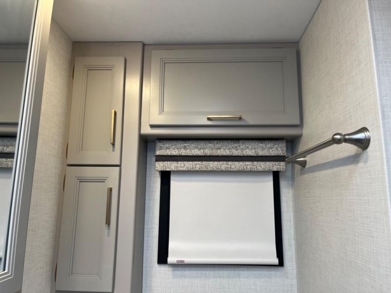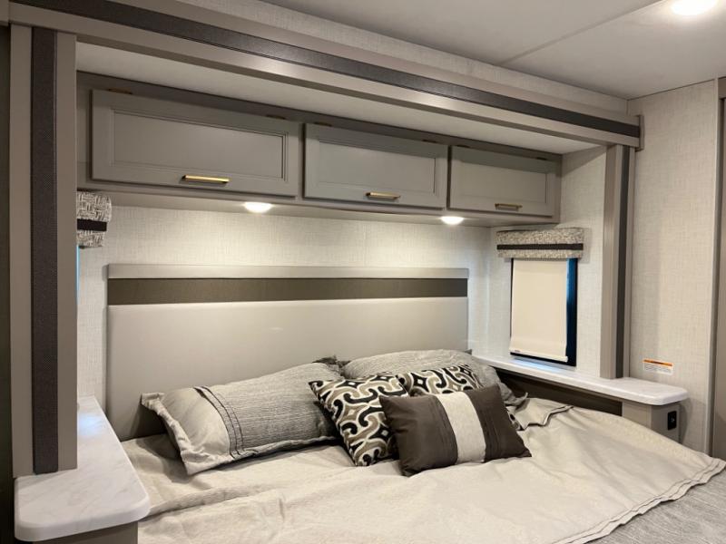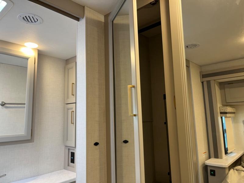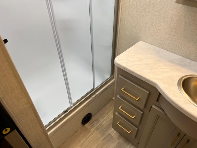 Get ready to take your travels to new heights with our incredible Class A motorhome! The full rear bathroom is spacious and convenient, complete with a generous 30” x 36” shower. The private bedroom is a haven of relaxation, featuring a king bed, closet, dresser, and 32” LED smart TV for relaxing. The living room/kitchen area is the center of the home, equipped with a closet, stackable washer, and dryer prep, half bathroom, linen closet, pantry, 68” sofa bed, dream dinette to share a meal with family, 40” LED smart TV to have an entertaining time with your family and friends, plus a fridge, microwave, and 3-burner cooktop, that will make your cooking experience enjoyable. But that's not all - this motorhome also features a drop-down overhead bunk sleeping area, perfect for kids or guests. This unit is also the best choice if you are seeking comfort time outside thanks to its massive 18’ awning ideal for enjoying the fresh air and a 32” TV for outdoor entertainment.