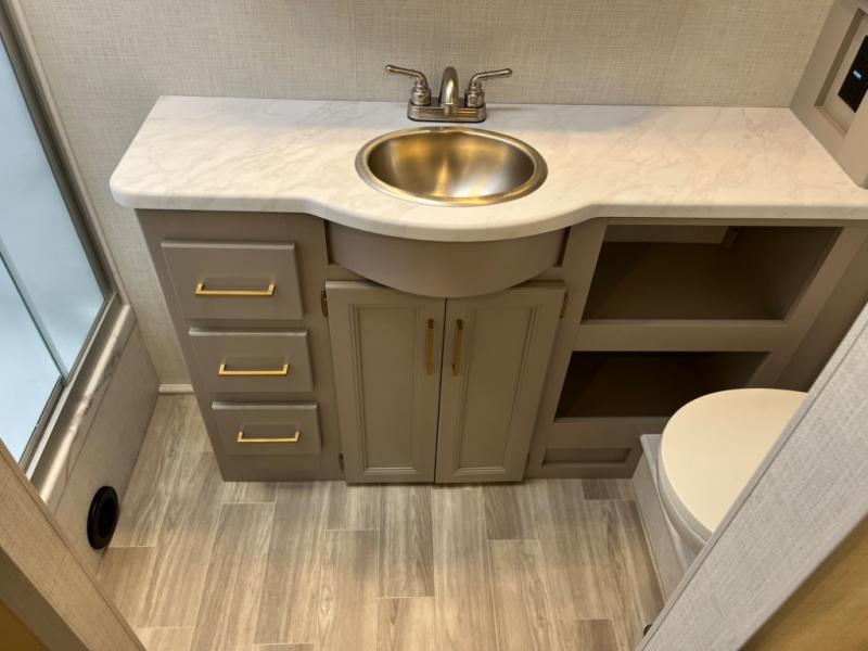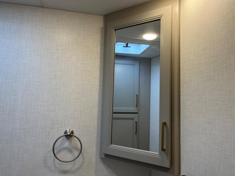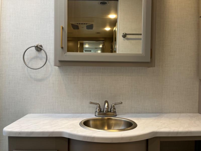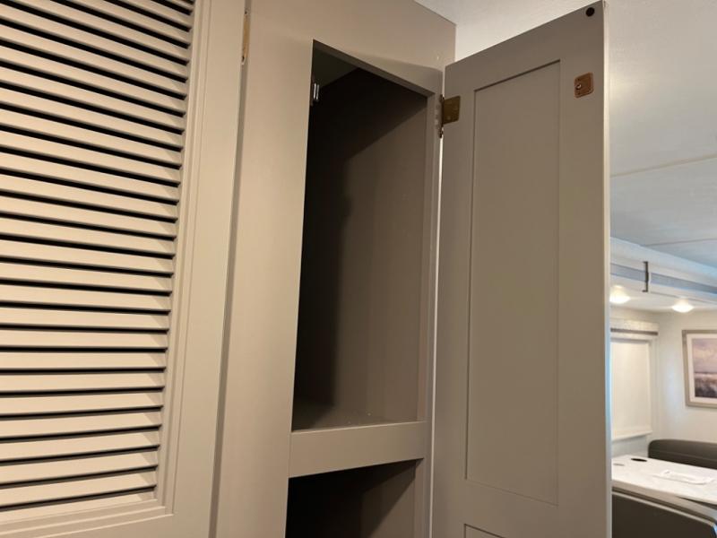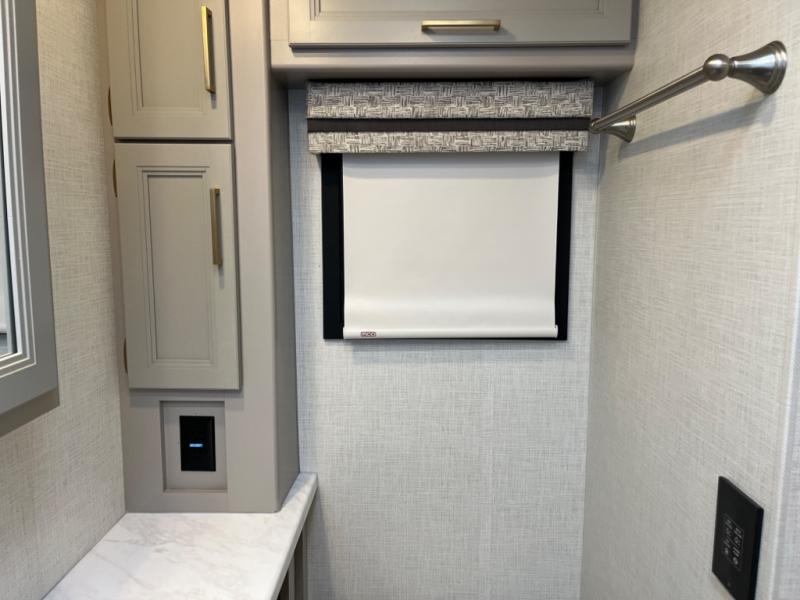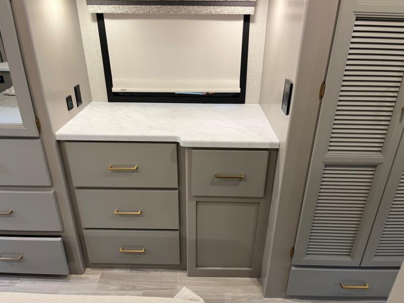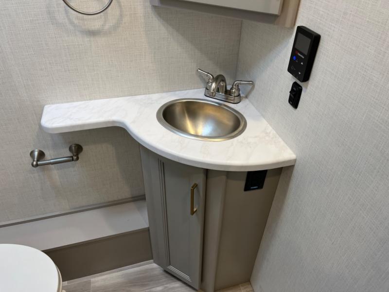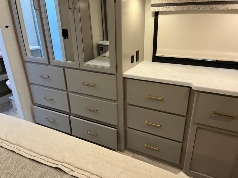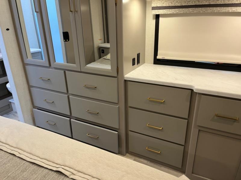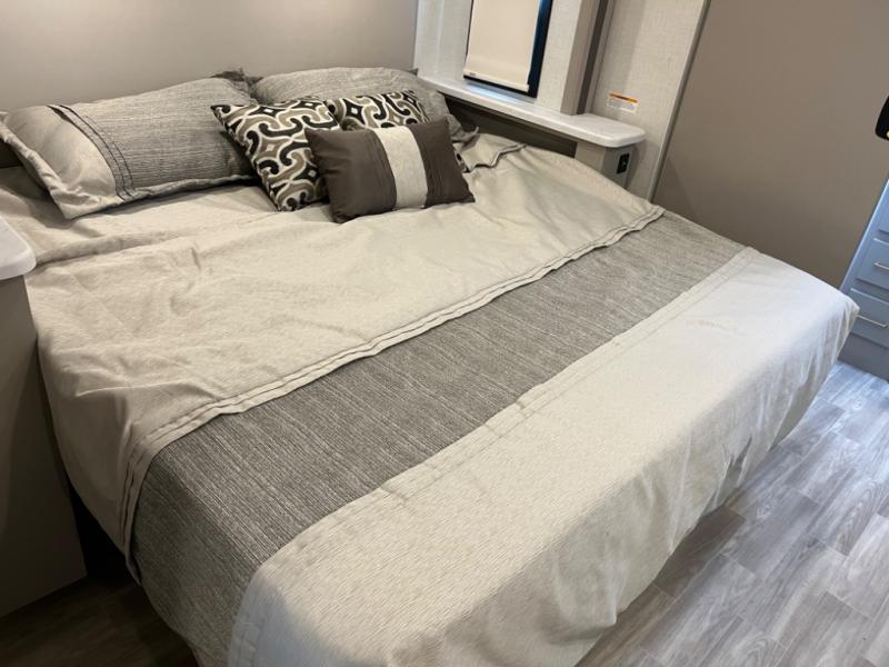 Get ready to take your travels to new heights with our incredible Class A motorhome! The full rear bathroom is spacious and convenient, complete with a generous 30” x 36” shower. The private bedroom is a haven of relaxation, featuring a king bed, closet, dresser, and 32” LED smart TV for relaxing. The living room/kitchen area is the center of the home, equipped with a closet, stackable washer, and dryer prep, half bathroom, linen closet, pantry, 68” sofa bed, dream dinette to share a meal with family, 40” LED smart TV to have an entertaining time with your family and friends, plus a fridge, microwave, and 3-burner cooktop, that will make your cooking experience enjoyable. But that's not all - this motorhome also features a drop-down overhead bunk sleeping area, perfect for kids or guests. This unit is also the best choice if you are seeking comfort time outside thanks to its massive 18’ awning ideal for enjoying the fresh air and a 32” TV for outdoor entertainment.