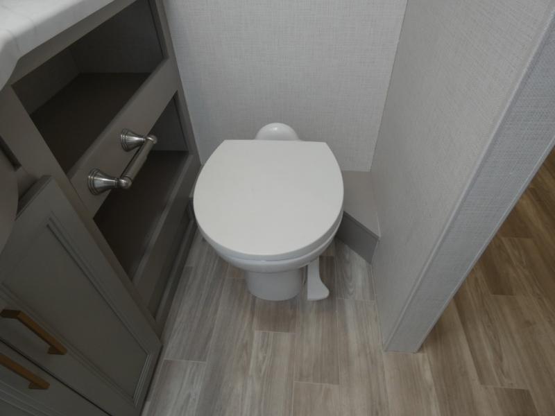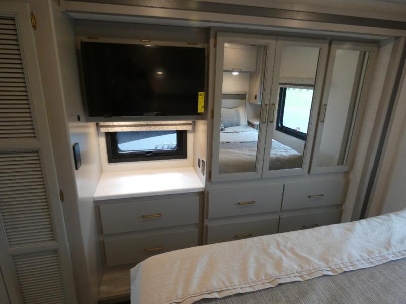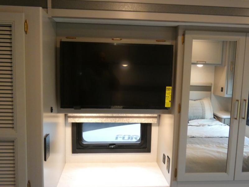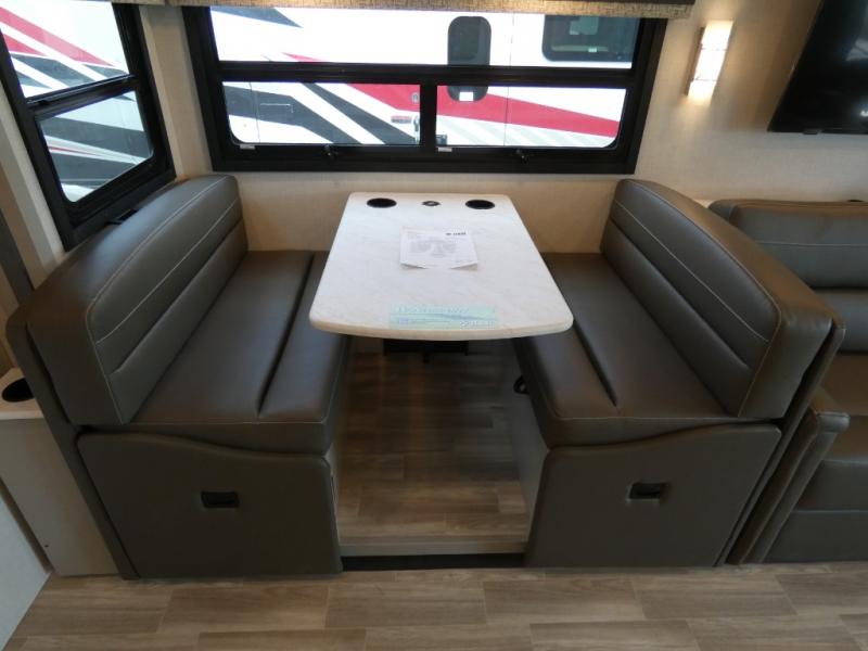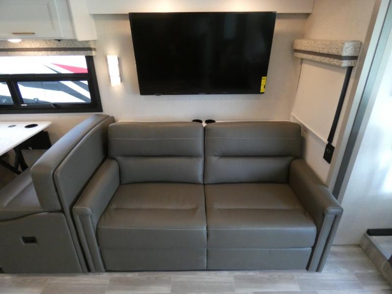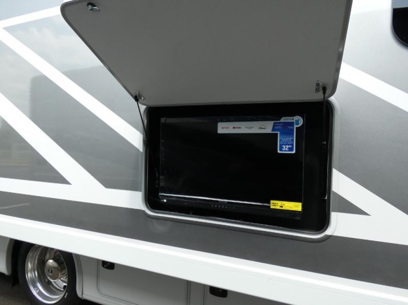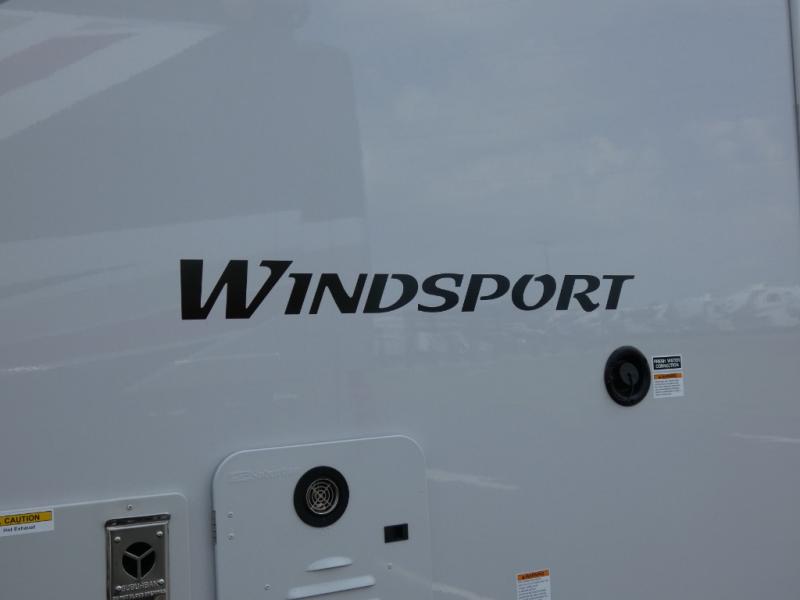 This Windsport Class A gas motorhome is exactly what you'll need to have enjoyable vacations with the family! The main living area is decked out with comfort. First of all, it offers you more space because of the slide out, and this slide out is what holds the 68" Dream Dinette, 68" sofa bed, and 50" LED Smart TV. Second, there is even more lounge space with the theater seating with footrests that sits across from the dinette and sofa bed. And on top of all of that, you'll also have a second LED Smart TV in the living room, so you can have a surround sound experience and multi-view entertainment while watching a movie. The private bedroom also offers great comfort with its king bed and 32" LED Smart TV, and there is more entertainment outside with the exterior 32" TV.