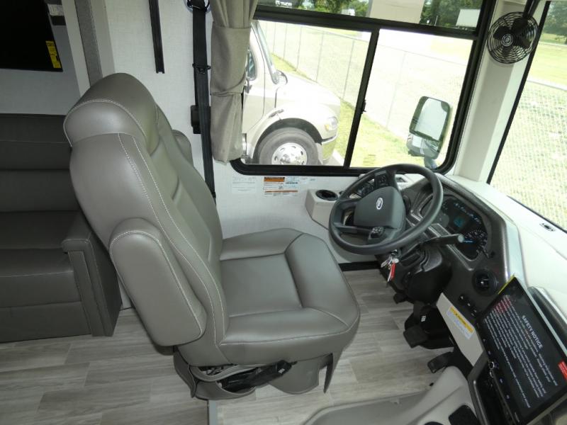 There are all sorts of adventures to be had with the Thor Motor Coach Windsport Class A gas motorhome! Built on a Ford F-53 chassis, the Windsport will gather lots of attention with its HD-MAX® exterior with graphics package. It also offers you a basement pass-through storage and a Pet-Link™ multi-purpose tie-down. There are also reclining/swivel leatherette captain's chairs to relax in while you travel. The Winegard® ConnecT™ Wi-Fi extender +4G will allow you to post on your social media or send an email from the cockpit's dash work station, and the Rapid Camp+® multiplex wiring control system with Bluetooth and 7" touchscreen will allow you to control and monitor the various electrical systems on your coach. This coach will also make you feel right at home with residential vinyl flooring, decorative glass and tile backsplash, a designer headboard, bedspread, and pillow shams, and many more comforts!