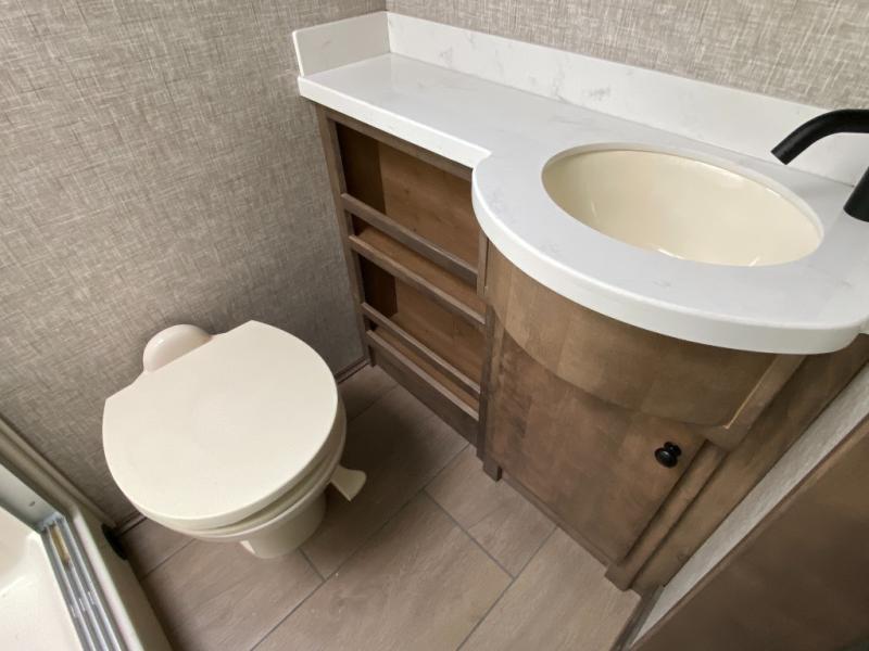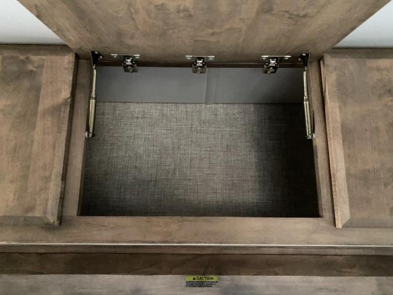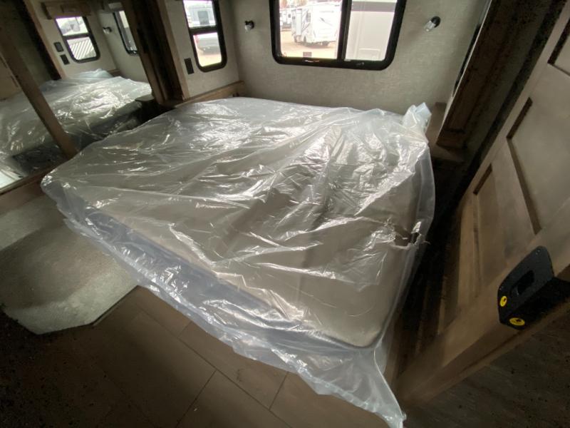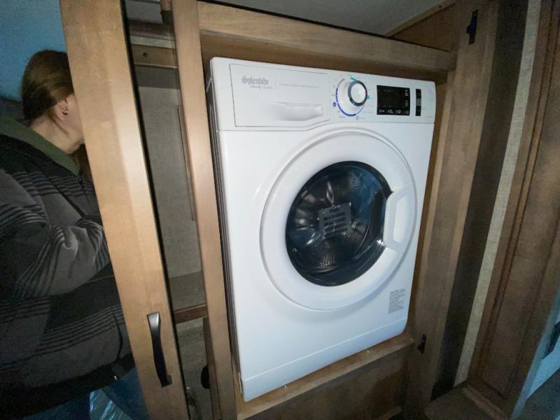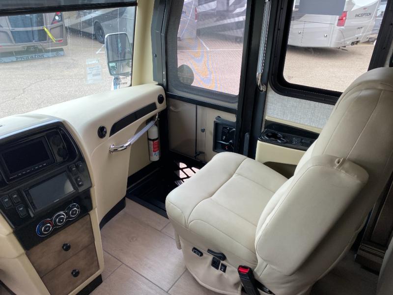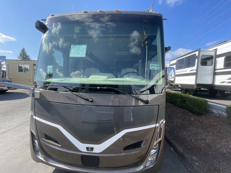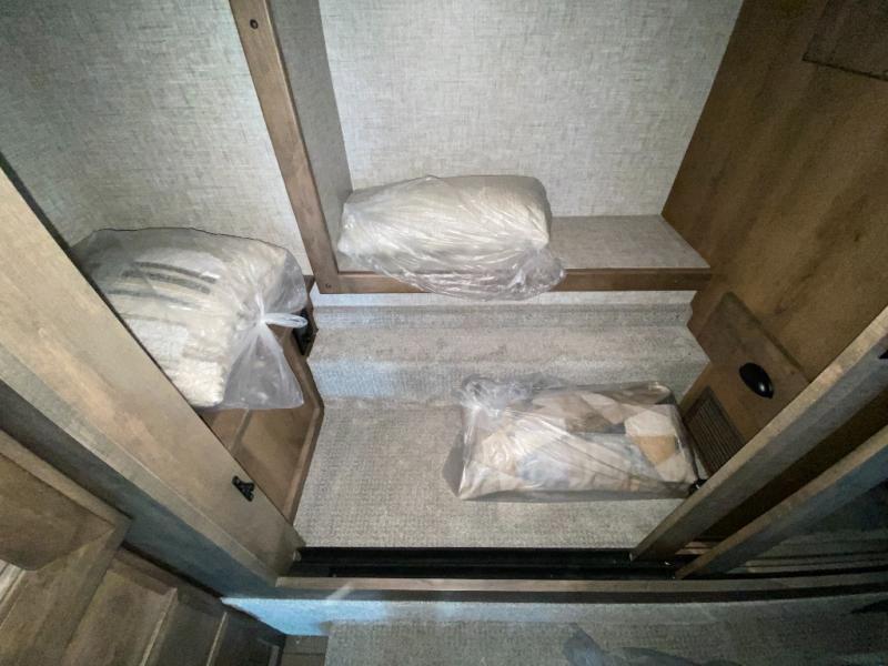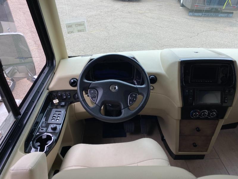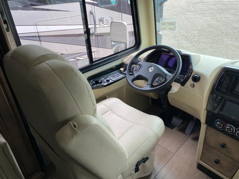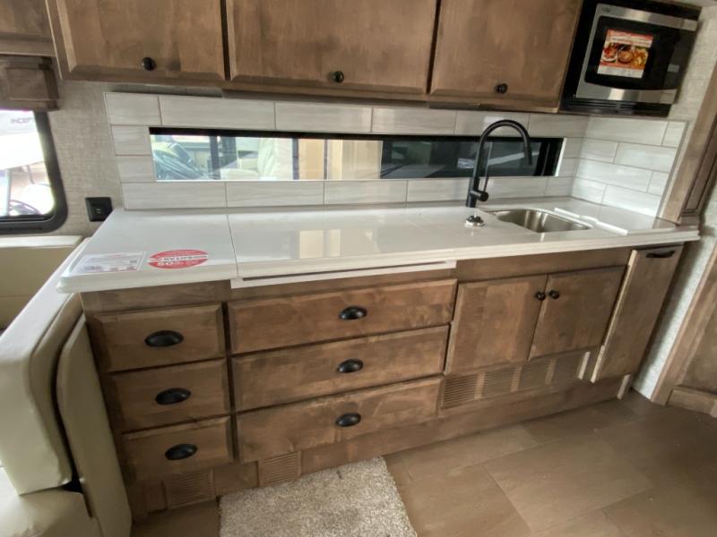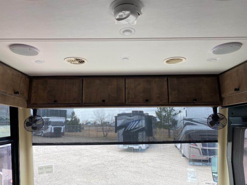 Pack your bags and load up into this motorhome for a luxurious adventure! The rear private bedroom has a king bed slide that can be switched for an optional queen bed, a bank of drawers next to a TV, a large closet, and a wardrobe that is prepped to add an optional washer and dryer so you can have clean clothes throughout your entire trip. The full bathroom has a shower skylight, gravity flush toilet, solid surface countertop, and a handheld shower head with a slide bar for added convenience. When you're ready to eat, just whip up a meal on the three burner propane cooktop or use the convection microwave. You can dine at the booth dinette, or maybe switch out the dinette for an optional dinette computer workstation with a lift TV! You can spend your evenings with a movie since there is a living area TV with an optional fireplace, or you can head outdoor to enjoy the exterior TV and Girard power awning with LED lights!